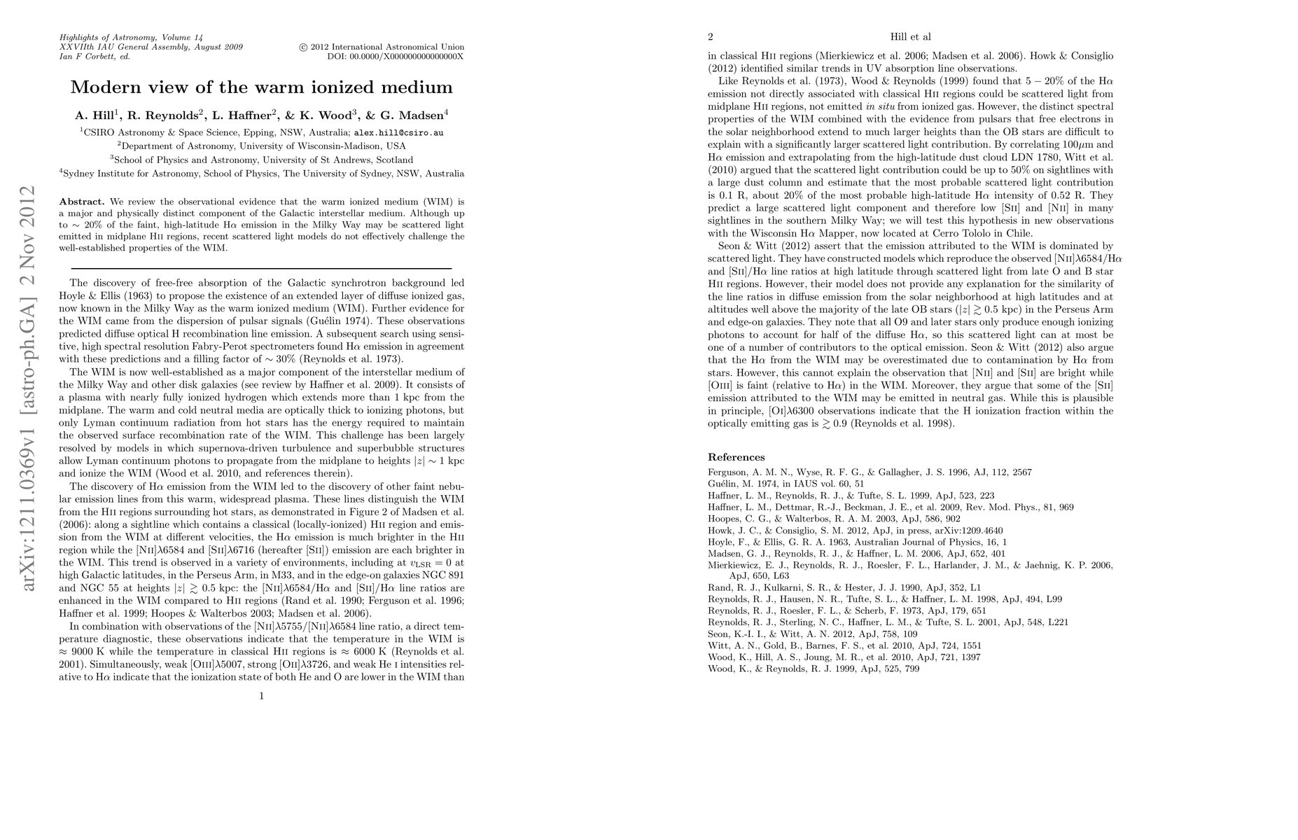 Recent studies confirm that the warm ionized medium (WIM) is a significant component of the Galactic interstellar medium, challenging previous assumptions about scattered light models. The WIM's properties remain well-established despite efforts to disprove its existence.