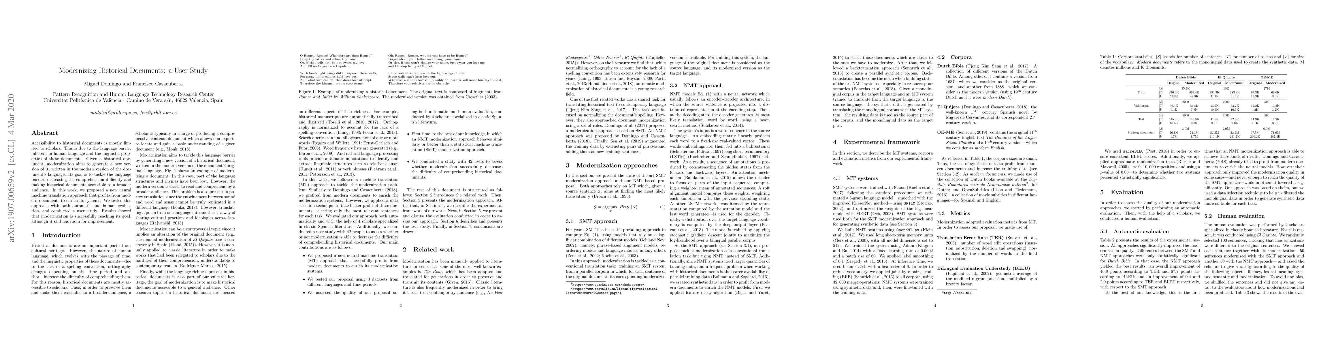 Accessibility to historical documents is mostly limited to scholars. This is due to the language barrier inherent in human language and the linguistic properties of these documents. Given a historical document, modernization aims to generate a new version of it, written in the modern version of the document's language. Its goal is to tackle the language barrier, decreasing the comprehension difficulty and making historical documents accessible to a broader audience. In this work, we proposed a new neural machine translation approach that profits from modern documents to enrich its systems. We tested this approach with both automatic and human evaluation, and conducted a user study. Results showed that modernization is successfully reaching its goal, although it still has room for improvement.