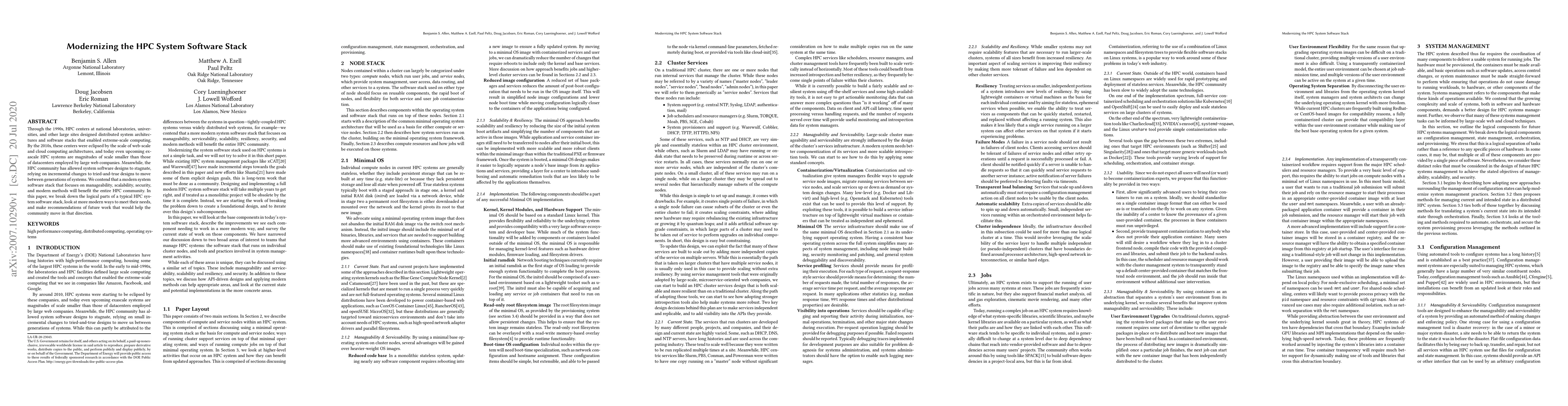 This paper argues for modernizing the HPC system software stack to address manageability, scalability, security, and modern methods, as current designs have stagnated. It analyzes the components of the existing stack and proposes a forward-thinking approach to benefit the entire HPC community.
