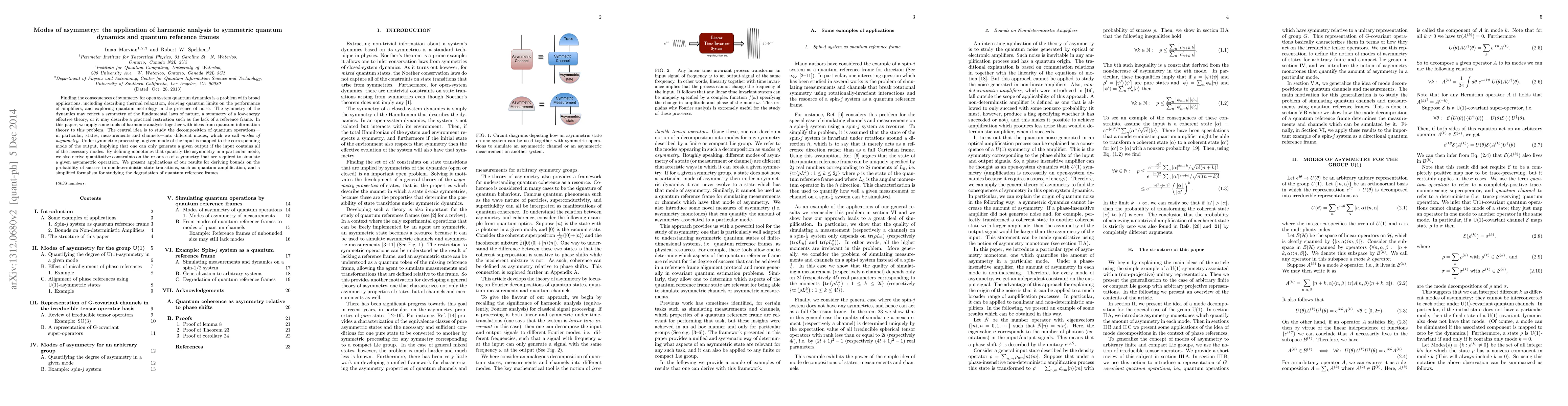 Finding the consequences of symmetry for open system quantum dynamics is a problem with broad applications, including describing thermal relaxation, deriving quantum limits on the performance of amplifiers, and exploring quantum metrology in the presence of noise. The symmetry of the dynamics may reflect a symmetry of the fundamental laws of nature, a symmetry of a low-energy effective theory, or it may describe a practical restriction such as the lack of a reference frame. In this paper, we apply some tools of harmonic analysis together with ideas from quantum information theory to this problem. The central idea is to study the decomposition of quantum operations---in particular, states, measurements and channels---into different modes, which we call modes of asymmetry. Under symmetric processing, a given mode of the input is mapped to the corresponding mode of the output, implying that one can only generate a given output if the input contains all of the necessary modes. By defining monotones that quantify the asymmetry in a particular mode, we also derive quantitative constraints on the resources of asymmetry that are required to simulate a given asymmetric operation. We present applications of our results for deriving bounds on the probability of success in nondeterministic state transitions, such as quantum amplification, and a simplified formalism for studying the degradation of quantum reference frames.