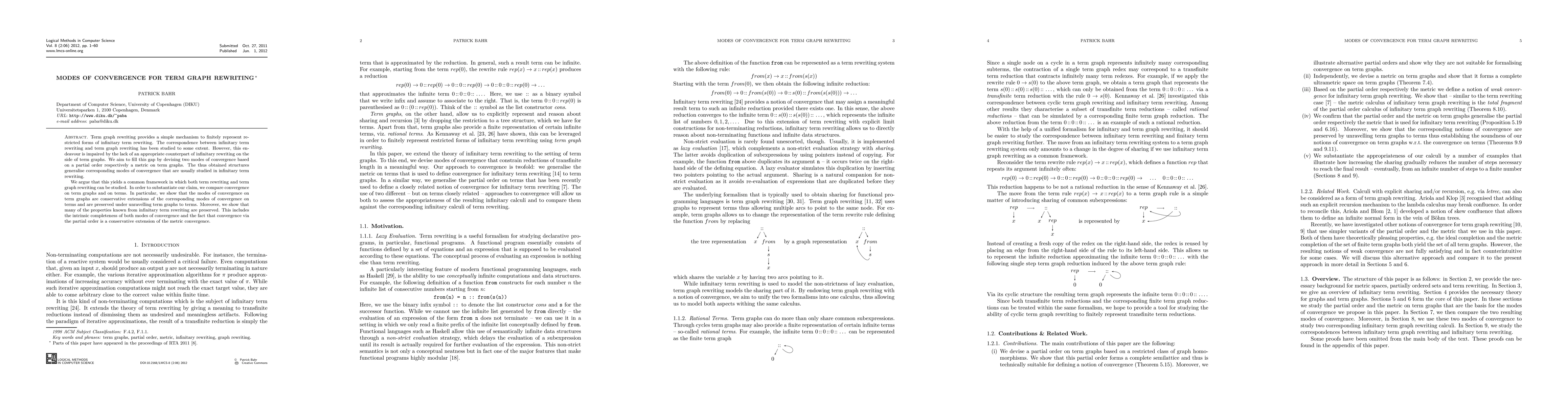 This paper introduces two modes of convergence for term graph rewriting, providing a framework that parallels infinitary term rewriting. It demonstrates that these modes are conservative extensions of those on terms and preserve properties such as intrinsic completeness and the relationship between partial order and metric convergence.