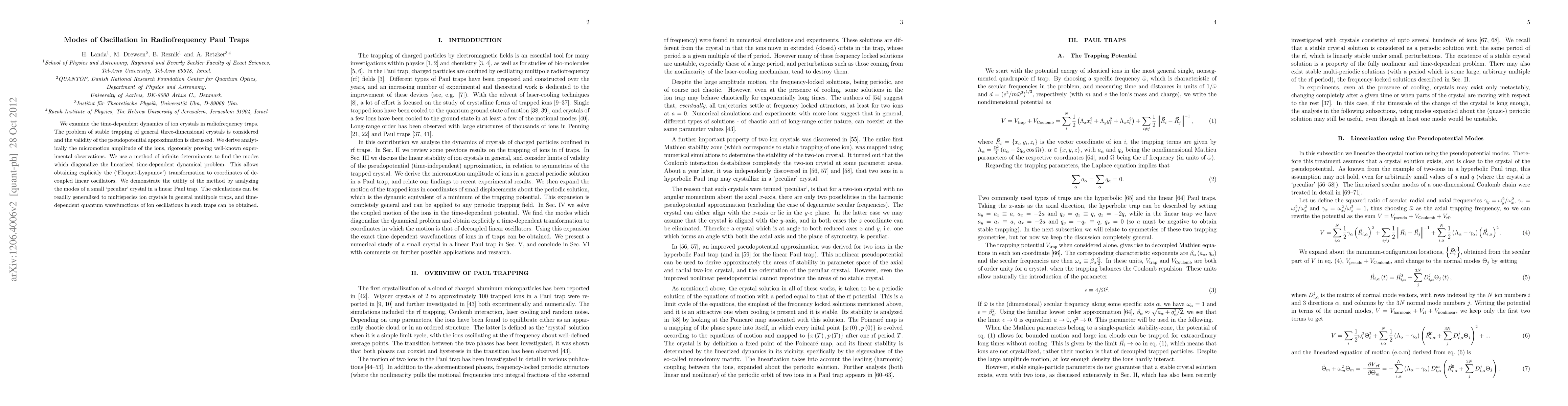 We examine the time-dependent dynamics of ion crystals in radiofrequency traps. The problem of stable trapping of general three-dimensional crystals is considered and the validity of the pseudopotential approximation is discussed. We derive analytically the micromotion amplitude of the ions, rigorously proving well-known experimental observations. We use a method of infinite determinants to find the modes which diagonalize the linearized time-dependent dynamical problem. This allows obtaining explicitly the ('Floquet-Lyapunov') transformation to coordinates of decoupled linear oscillators. We demonstrate the utility of the method by analyzing the modes of a small `peculiar' crystal in a linear Paul trap. The calculations can be readily generalized to multispecies ion crystals in general multipole traps, and time-dependent quantum wavefunctions of ion oscillations in such traps can be obtained.