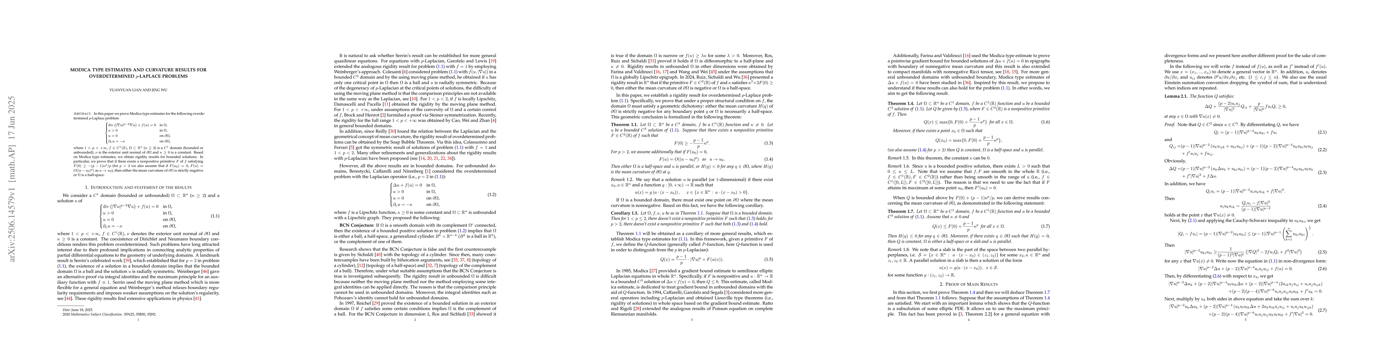 In this paper we prove Modica type estimates for the following overdetermined $p$-Laplace problem \begin{equation*} \begin{cases} \mathrm{div} \left(|\nabla u|^{p-2}\nabla u\right)+f(u) =0& \mbox{in $\Omega$, } u>0 &\mbox{in $\Omega$, } u=0 &\mbox{on $\partial\Omega$, } \partial_{\nu} u=-\kappa &\mbox{on $\partial\Omega$, } \end{cases} \end{equation*} where $1