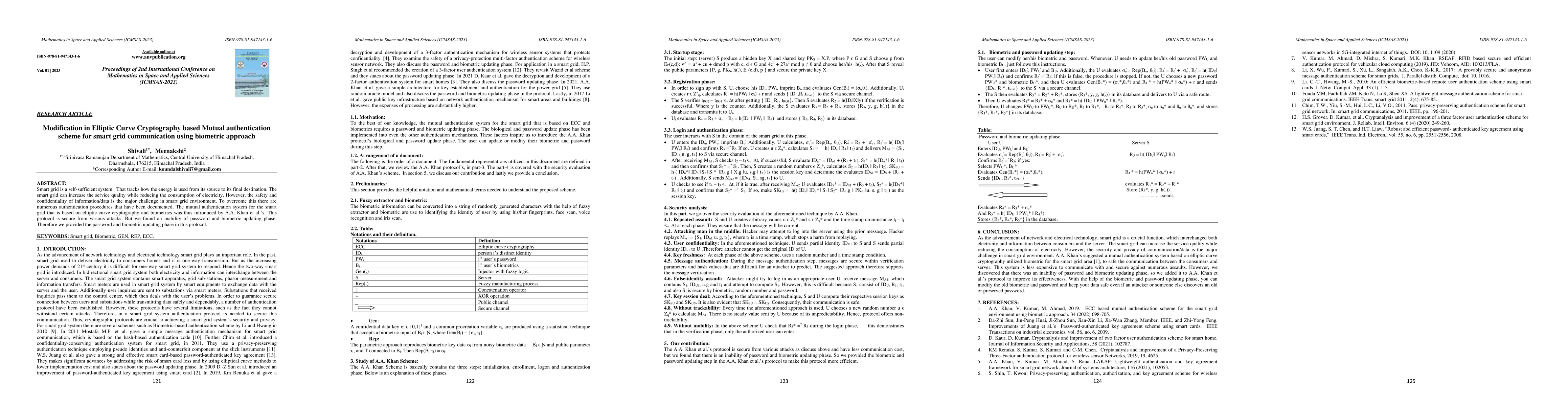 This paper modifies an elliptic curve cryptography-based mutual authentication scheme for smart grid communication by incorporating a biometric approach to enhance security. The updated protocol includes mechanisms for password and biometric updating, addressing previous limitations and improving overall system robustness.
