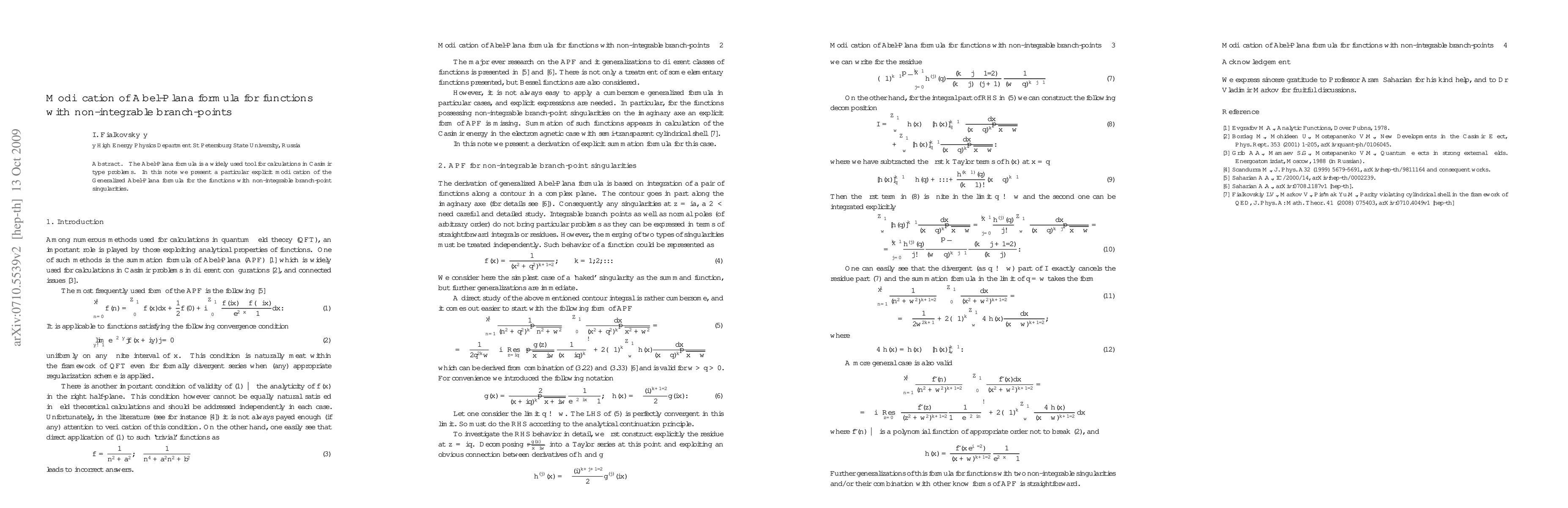 The paper proposes an explicit modification of the Abel-Plana formula to handle functions with non-integrable branch-point singularities, enhancing its applicability in Casimir type problems. This modification allows for more accurate calculations in scenarios where traditional methods fail due to singularities.
