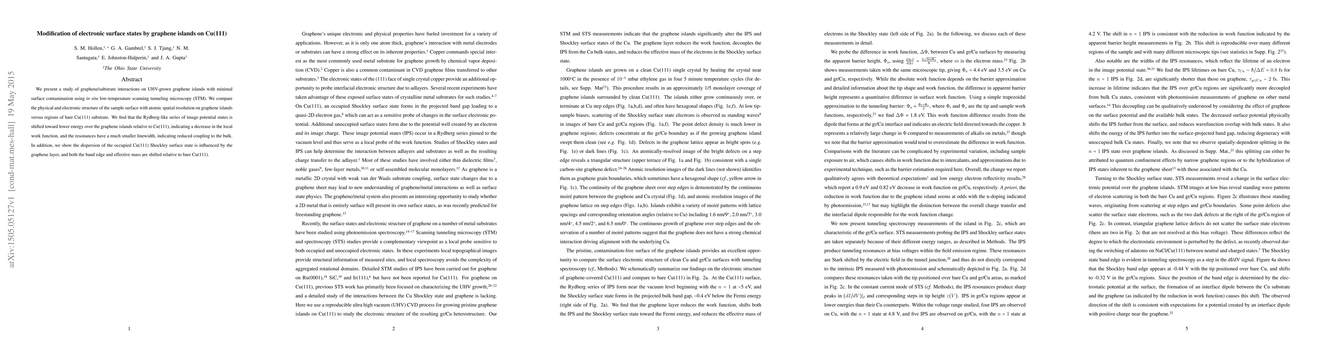 This study reveals that graphene islands on Cu(111) modify electronic surface states, shifting Rydberg-like series to lower energy and reducing coupling to the bulk, while also altering the dispersion of the Cu(111) Shockley surface state.