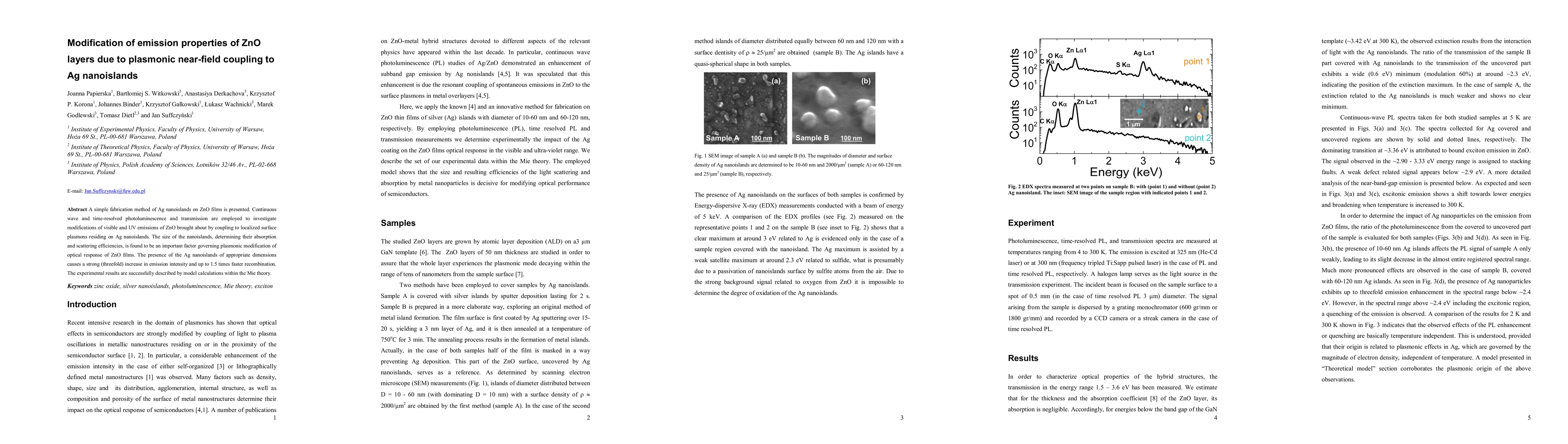 The presence of Ag nanoislands on ZnO films modifies their emission properties through plasmonic near-field coupling, increasing emission intensity up to 1.5 times and accelerating recombination up to threefold.