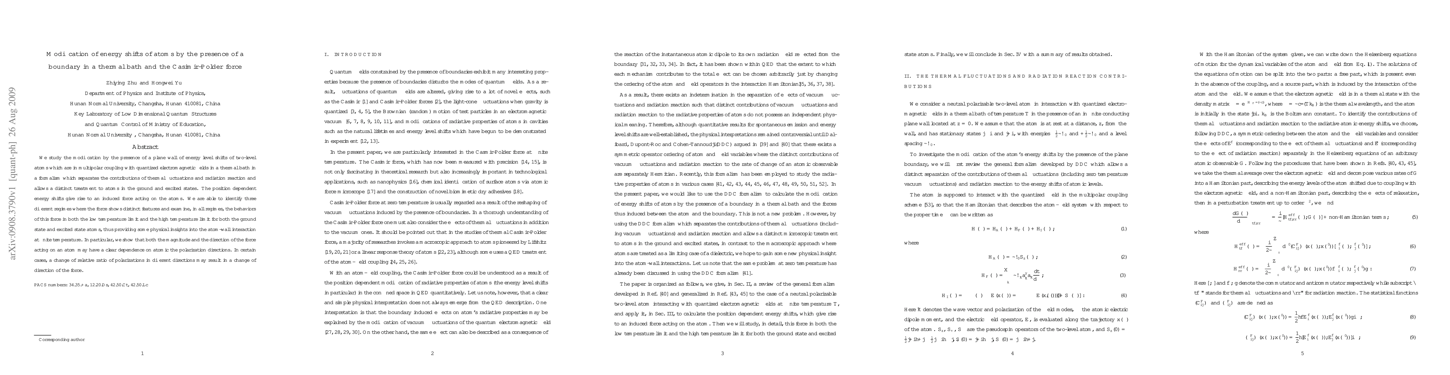 We study the modification by the presence of a plane wall of energy level shifts of two-level atoms which are in multipolar coupling with quantized electromagnetic fields in a thermal bath in a formalism which separates the contributions of thermal fluctuations and radiation reaction and allows a distinct treatment to atoms in the ground and excited states. The position dependent energy shifts give rise to an induced force acting on the atoms. We are able to identify three different regimes where the force shows distinct features and examine, in all regimes, the behaviors of this force in both the low temperature limit and the high temperature limit for both the ground state and excited state atoms, thus providing some physical insights into the atom-wall interaction at finite temperature. In particular, we show that both the magnitude and the direction of the force acting on an atom may have a clear dependence on atomic the polarization directions. In certain cases, a change of relative ratio of polarizations in different directions may result in a change of direction of the force.