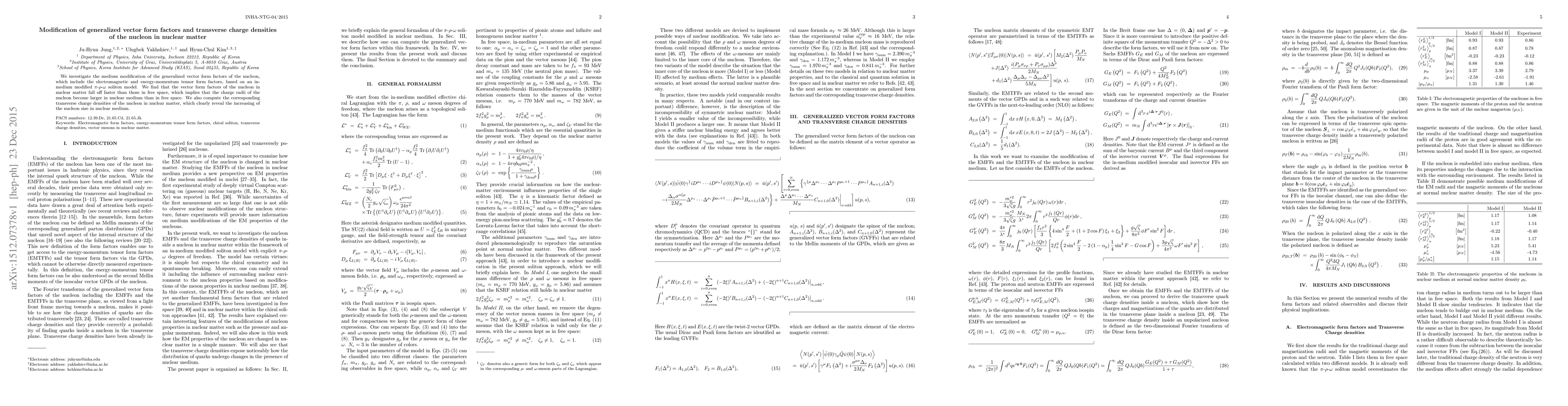 This paper examines how the generalized vector form factors of the nucleon, including electromagnetic and energy-momentum tensor form factors, are modified in nuclear matter using an in-medium modified $\pi$-$\rho$-$\omega$ soliton model. The study finds that these form factors decrease more rapidly in nuclear matter, indicating larger nucleon charge radii and increased nucleon size compared to free space.