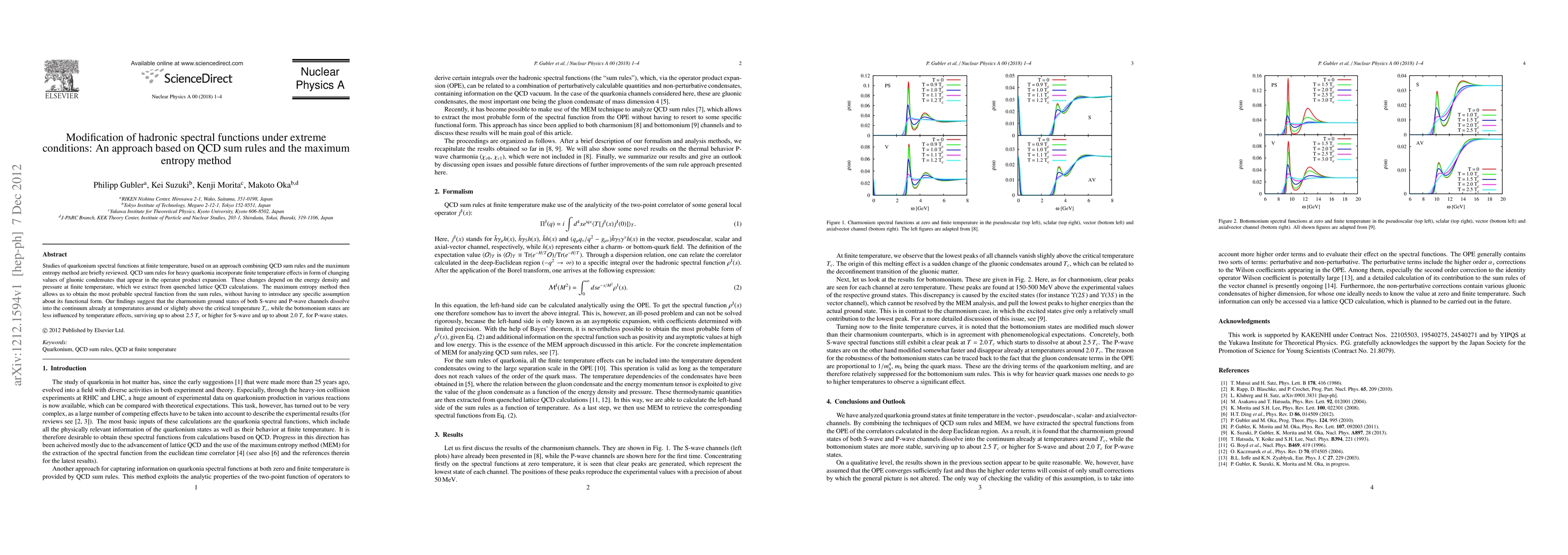 This paper combines QCD sum rules and the maximum entropy method to study quarkonium spectral functions at finite temperatures, revealing that charmonium states dissolve into the continuum near the critical temperature, while bottomonium states remain stable at higher temperatures.