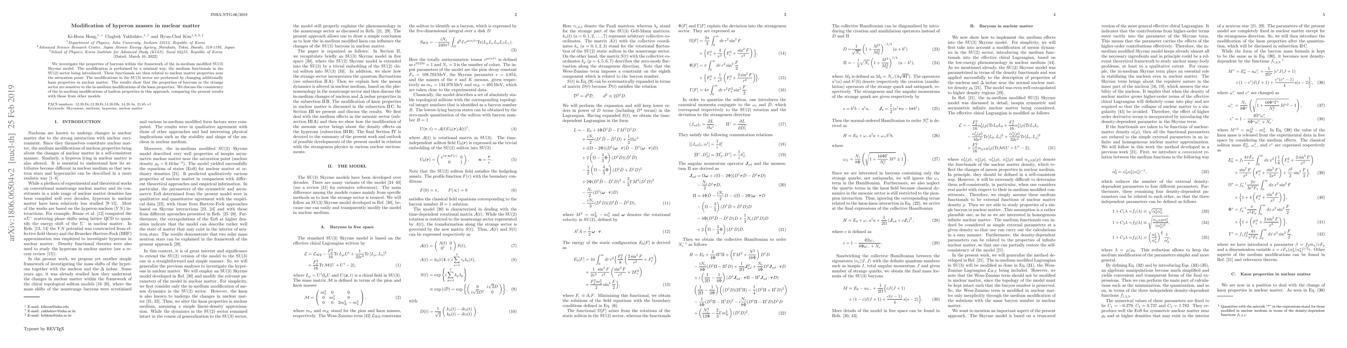 This paper explores baryon properties in the modified SU(3) Skyrme model, focusing on in-medium effects and their relation to nuclear matter near saturation. It finds that baryons in the strange sector are notably influenced by changes in kaon properties in nuclear matter, and discusses the consistency of these findings with other models and phenomenological data.