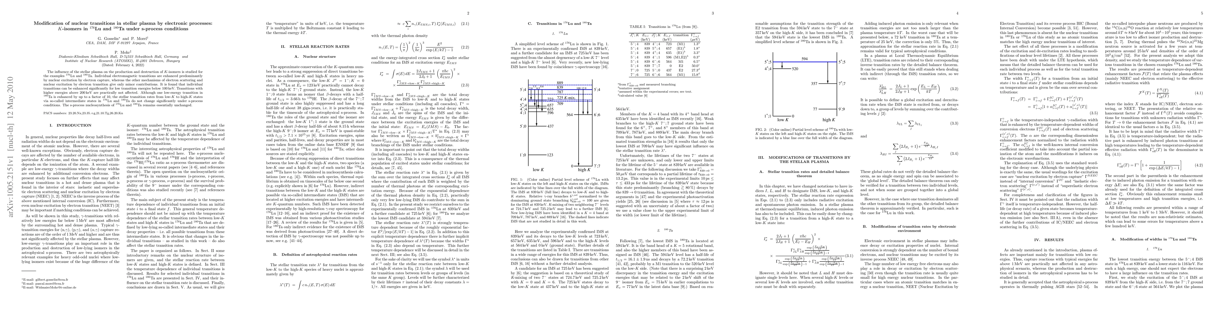 This paper investigates how stellar plasma affects K-isomer transitions in 176Lu and 180Ta, finding that electron capture enhances low-energy transitions below 100 keV, while higher-energy transitions above 200 keV remain largely unaffected. Despite significant enhancement of some low-energy transitions, the overall s-process nucleosynthesis of these elements is not significantly altered.