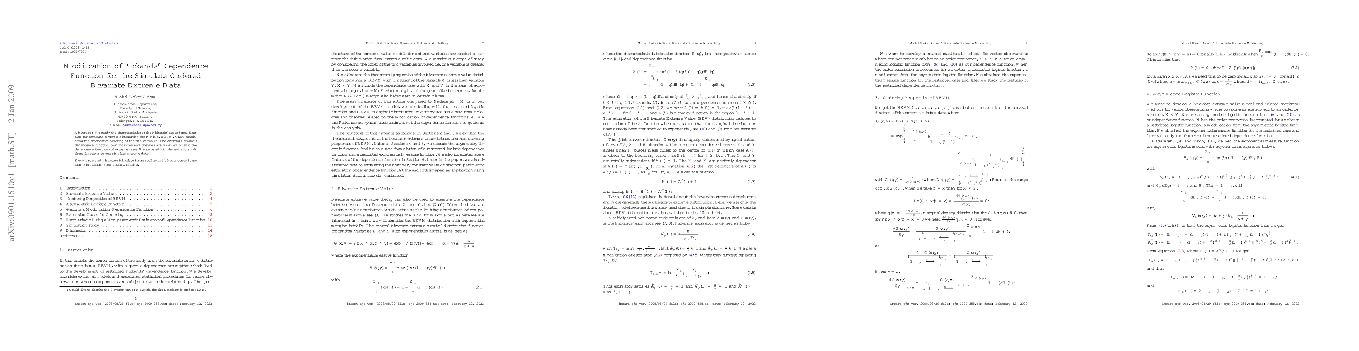 This paper modifies Pickands' dependence function to better describe the dependence characteristics of bivariate extreme minima (BEVM) under stochastic ordering. The adapted function is successfully implemented and tested on simulated extreme data.