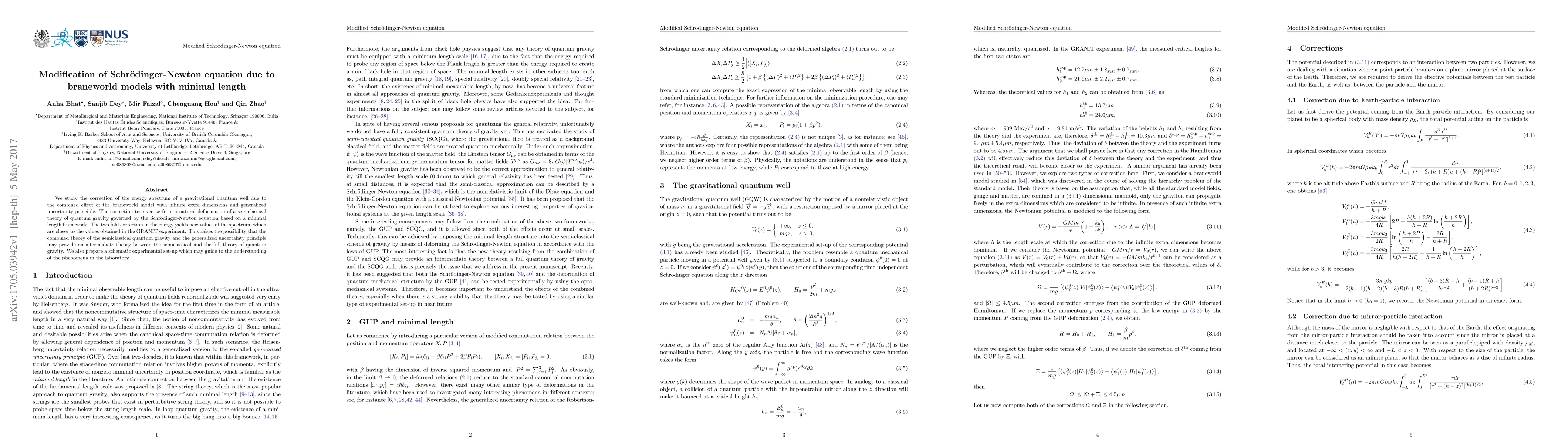 We study the correction of the energy spectrum of a gravitational quantum well due to the combined effect of the braneworld model with infinite extra dimensions and generalized uncertainty principle. The correction terms arise from a natural deformation of a semiclassical theory of quantum gravity governed by the Schr\"odinger-Newton equation based on a minimal length framework. The two fold correction in the energy yields new values of the spectrum, which are closer to the values obtained in the GRANIT experiment. This raises the possibility that the combined theory of the semiclassical quantum gravity and the generalized uncertainty principle may provide an intermediate theory between the semiclassical and the full theory of quantum gravity. We also prepare a schematic experimental set-up which may guide to the understanding of the phenomena in the laboratory.