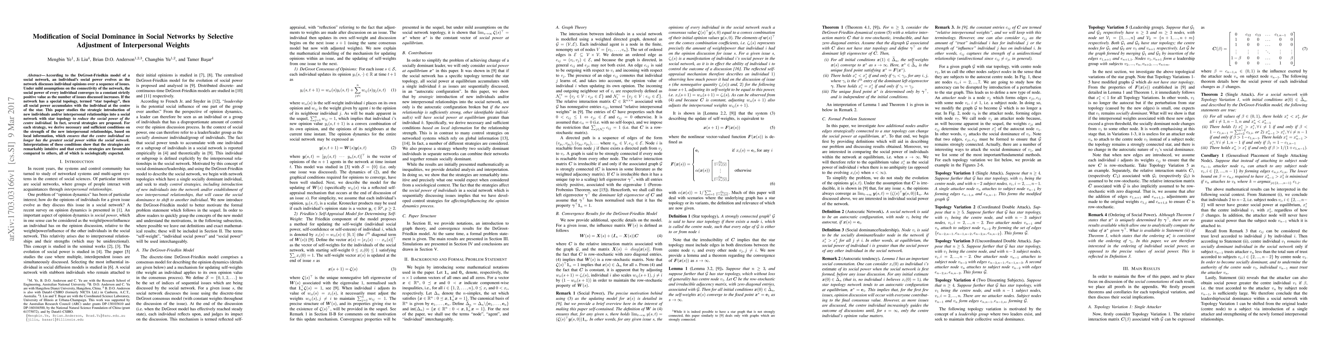 This paper explores strategies to modify social dominance in star-topology social networks by strategically adjusting interpersonal relationships. It proposes several methods to reduce the central individual's social power, deriving intuitive conditions for their effectiveness based on local network information.