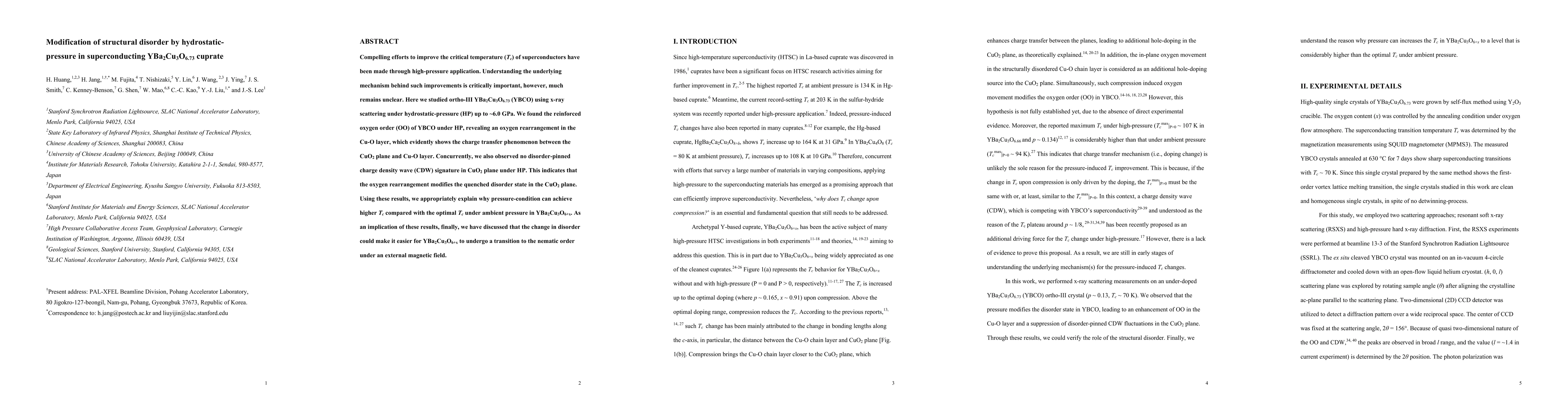 Researchers used high-pressure to modify structural disorder in a superconducting material, YBa$_{2}$Cu$_{3}$O$_{6.73}$, leading to higher critical temperatures and insights into charge transfer mechanisms.