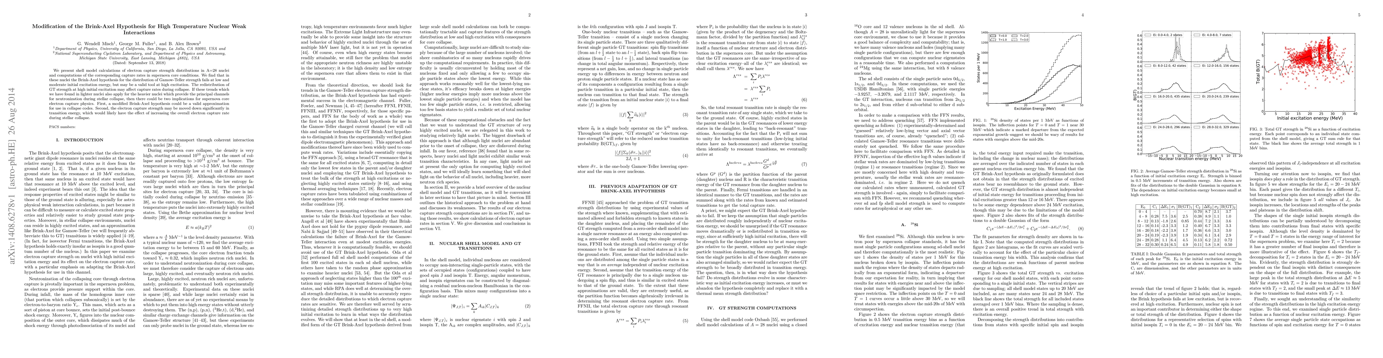 This paper modifies the Brink-Axel hypothesis for high-temperature nuclear weak interactions, finding that the hypothesis fails at low to moderate excitation but holds at high excitation. The study suggests that the redistribution of Gamow-Teller strength could impact electron capture rates during supernova collapse, potentially increasing the overall capture rate.