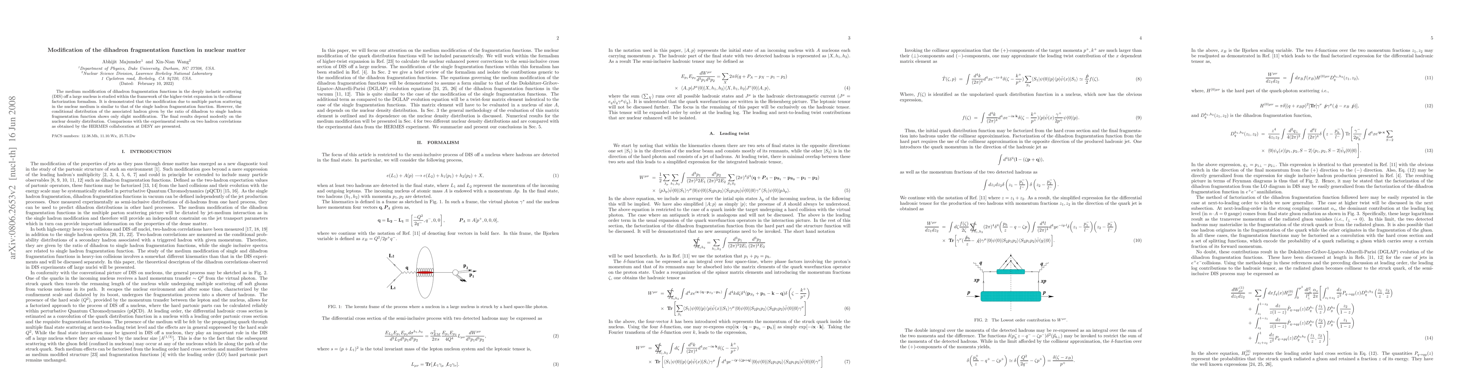This paper investigates the modification of dihadron fragmentation functions in nuclear matter during deep inelastic scattering, showing that while multiple parton scattering affects the functions similarly to single hadron fragmentation, the conditional distribution of associated hadrons remains largely unchanged. The study concludes with a comparison to experimental results from the HERMES collaboration.