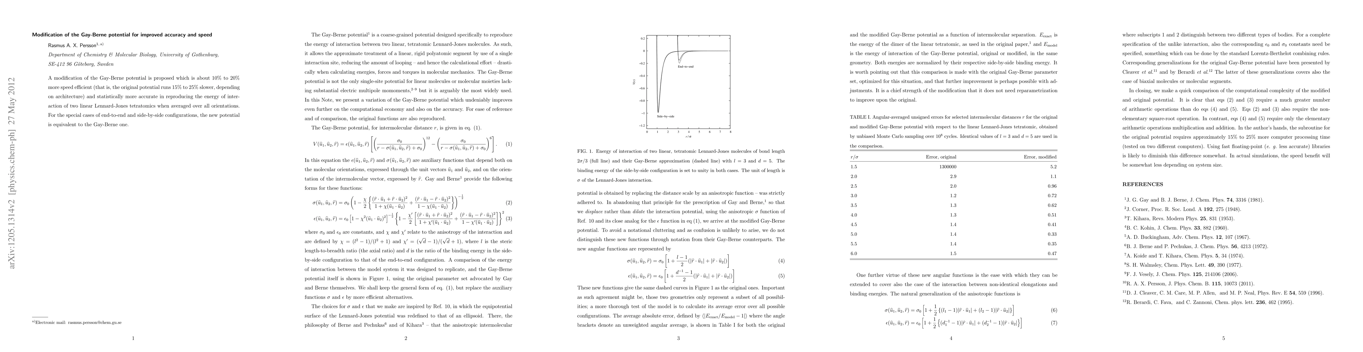 A modification of the Gay-Berne potential is proposed which is about 10% to 20% more speed efficient (that is, the original potential runs 15% to 25% slower, depending on architecture) and statistically more accurate in reproducing the energy of interaction of two linear Lennard-Jones tetratomics when averaged over all orientations. For the special cases of end-to-end and side-by-side configurations, the new potential is equivalent to the Gay-Berne one.