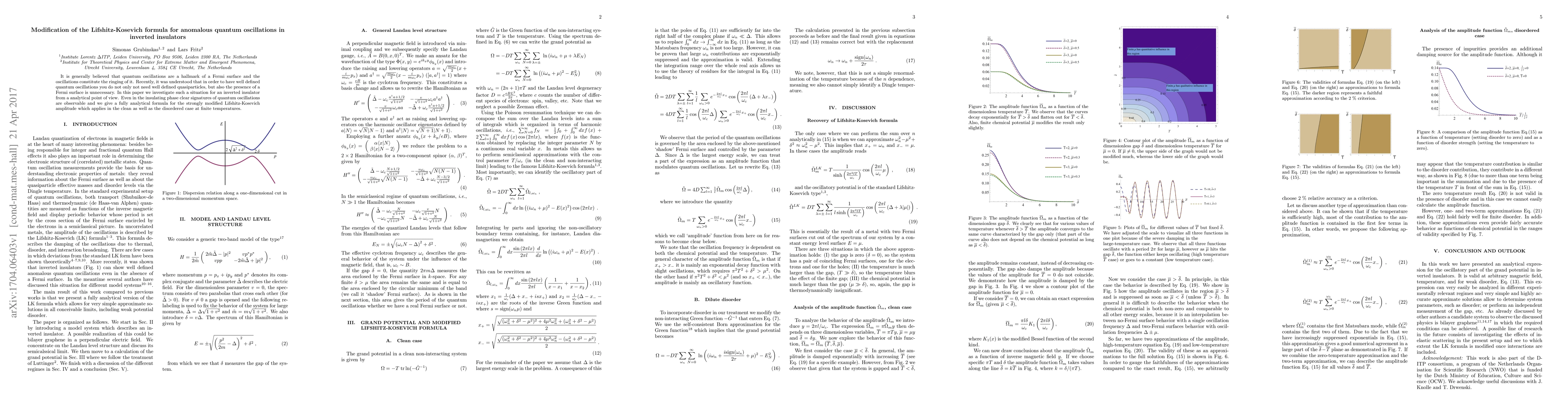 It is generally believed that quantum oscillations are a hallmark of a Fermi surface and the oscillations constitute the ringing of it. Recently, it was understood that in order to have well defined quantum oscillations you do not only not need well defined quasiparticles, but also the presence of a Fermi surface is unnecessary. In this paper we investigate such a situation for an inverted insulator from a analytical point of view. Even in the insulating phase clear signatures of quantum oscillations are observable and we give a fully analytical formula for the strongly modified Lifshitz-Kosevich amplitude which applies in the clean as well as the disordered case at finite temperatures.