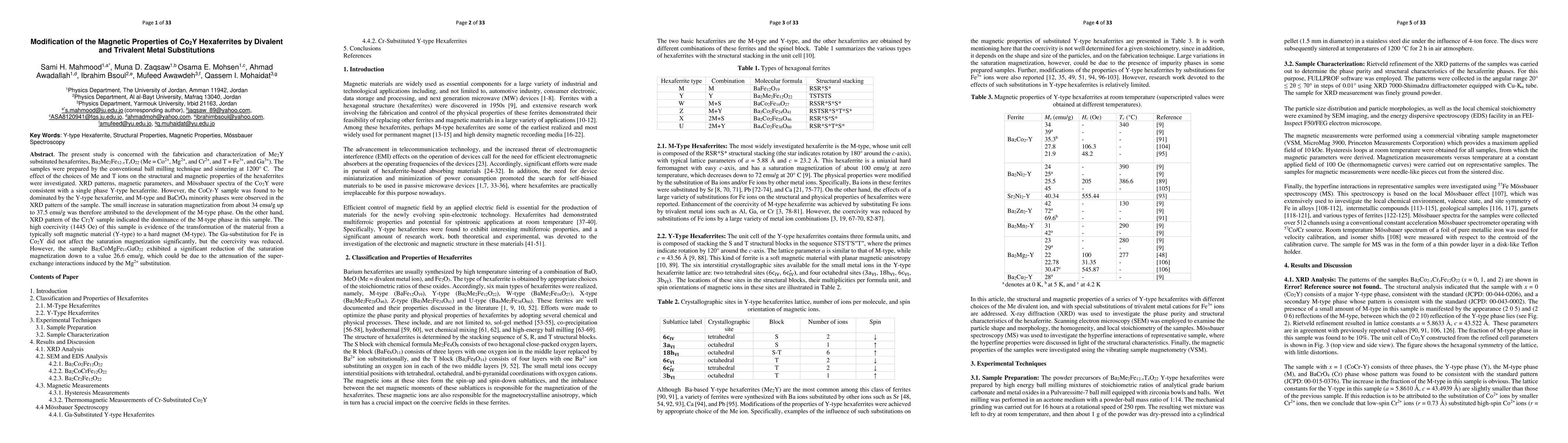 The present study is concerned with the fabrication and characterization of Me2Y substituted hexaferrites, Ba2Me2Fe12-xTxO22 (Me = Co2+, Mg2+, and Cr2+, and T = Fe3+, and Ga3+). The samples were prepared by the conventional ball milling technique and sintering at 1200{\deg} C. The effect of the choices of Me and T ions on the structural and magnetic properties of the hexaferrites were investigated. XRD patterns, magnetic parameters, and M\"ossbauer spectra of the Co2Y were consistent with a single phase Y-type hexaferrite. However, the CoCr-Y sample was found to be dominated by the Y-type hexaferrite, and M-type and BaCrO4 minority phases were observed in the XRD pattern of the sample. The small increase in saturation magnetization from about 34 emu/g up to 37.5 emu/g was therefore attributed to the development of the M-type phase. On the other hand, XRD pattern of the Cr2Y sample indicated the dominance of the M-type phase in this sample. The high coercivity (1445 Oe) of this sample is evidence of the transformation of the material from a typically soft magnetic material (Y-type) to a hard magnet (M-type). The Ga-substitution for Fe in Co2Y did not affect the saturation magnetization significantly, but the coercivity was reduced. However, the sample Ba2CoMgFe11GaO22 exhibited a significant reduction of the saturation magnetization down to a value 26.6 emu/g, which could be due to the attenuation of the super-exchange interactions induced by the Mg2+ substitution.