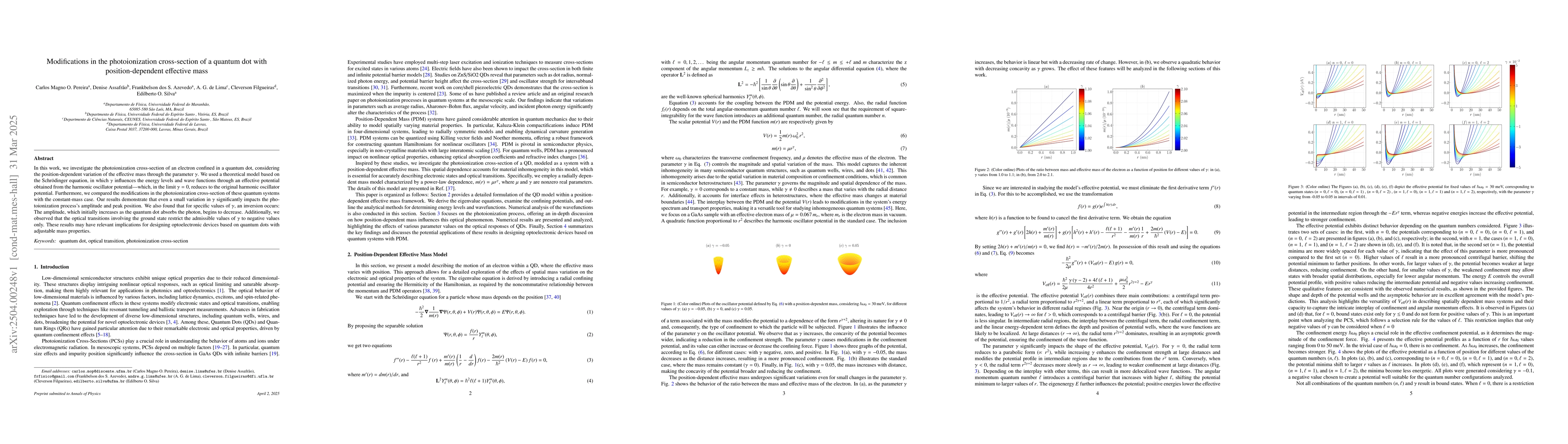 The study investigates the photoionization cross-section of an electron confined in a quantum dot with position-dependent effective mass using a theoretical model based on the Schrödinger equation. The parameter γ influences the energy levels and wave functions through an effective potential derived from the harmonic oscillator potential.