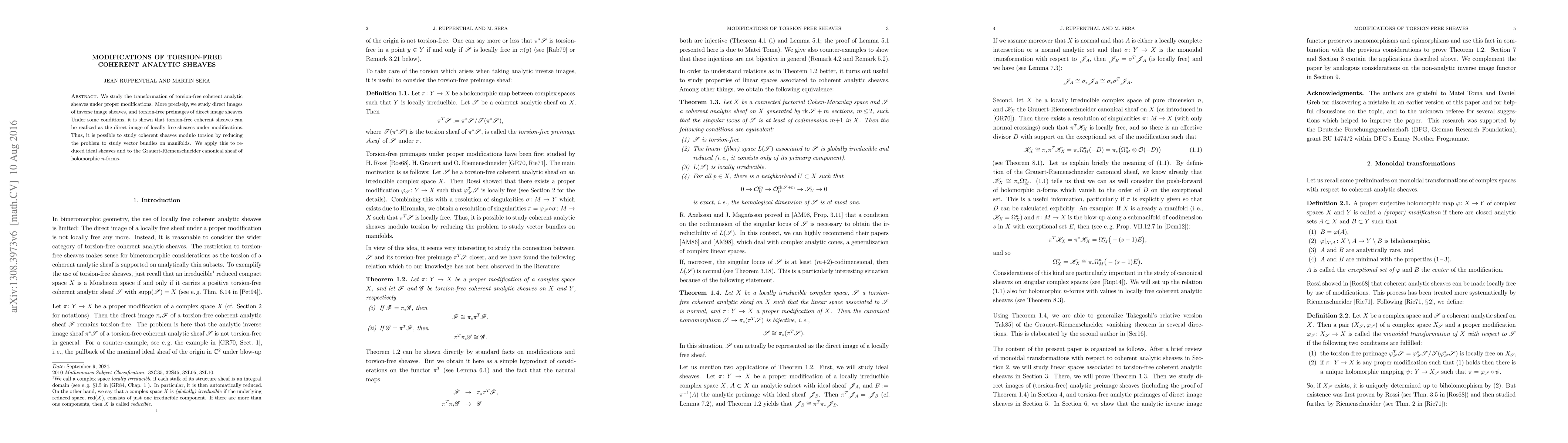 This paper explores how torsion-free coherent analytic sheaves transform under proper modifications, revealing that such sheaves can be represented as direct images of locally free sheaves. This allows for the simplification of studying torsion-free sheaves by examining vector bundles, applied to reduced ideal sheaves and the Grauert-Riemenschneider canonical sheaf.
