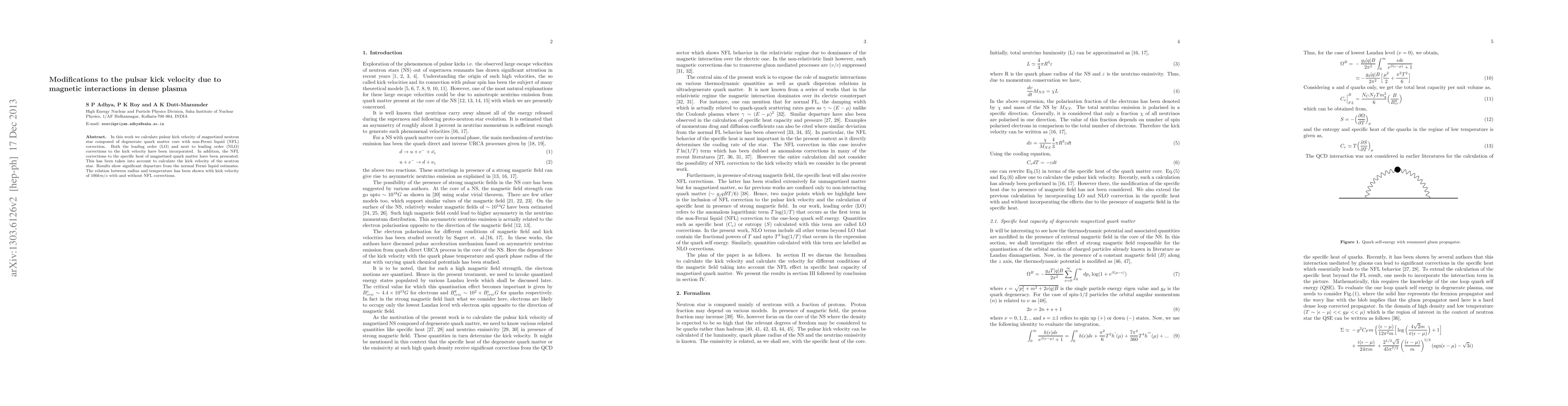 Research finds significant differences in pulsar kick velocity due to magnetic interactions in dense plasma, deviating from normal Fermi liquid estimates with corrections.