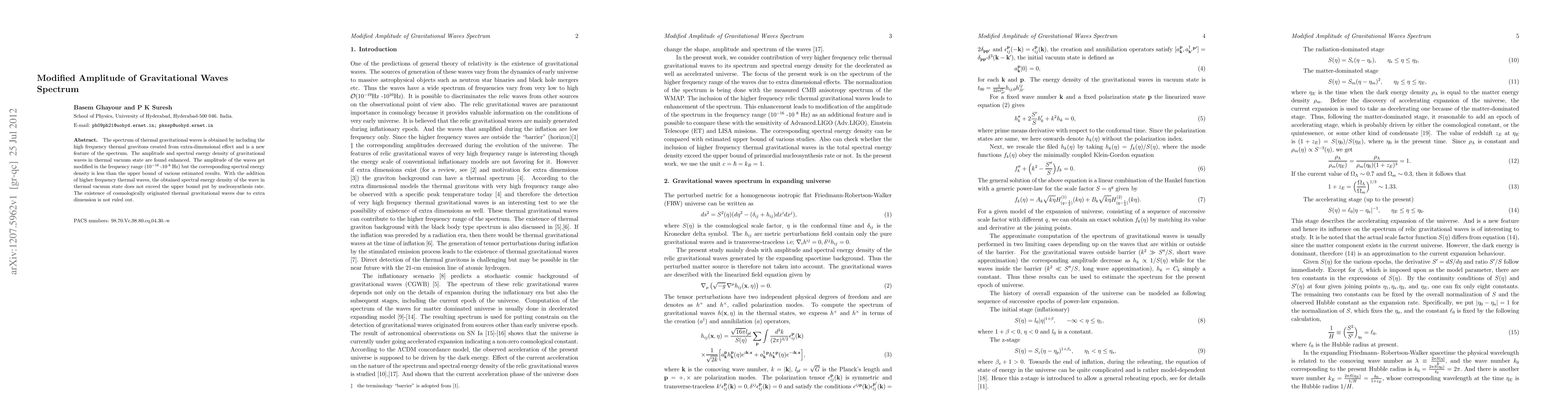 This paper investigates the modified amplitude of the thermal gravitational waves spectrum, revealing that high-frequency thermal gravitons from extra-dimensional effects enhance the amplitude and spectral energy density. Despite the modifications, the spectral energy density remains below the upper bounds set by nucleosynthesis rates, suggesting the potential existence of cosmologically originated thermal gravitational waves from extra dimensions.