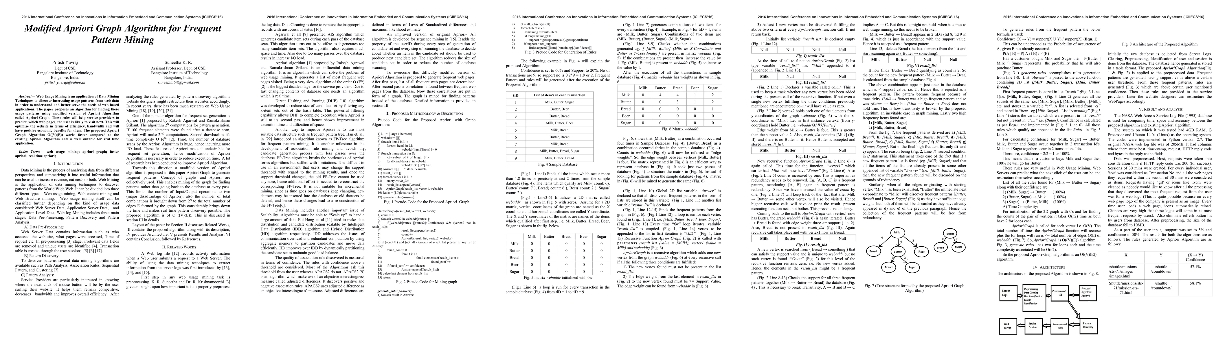 The paper proposes a modified Apriori Graph Algorithm for efficient frequent pattern mining in web usage data, offering faster performance than the traditional Apriori Algorithm and aiding in optimizing web services for better economic benefits.