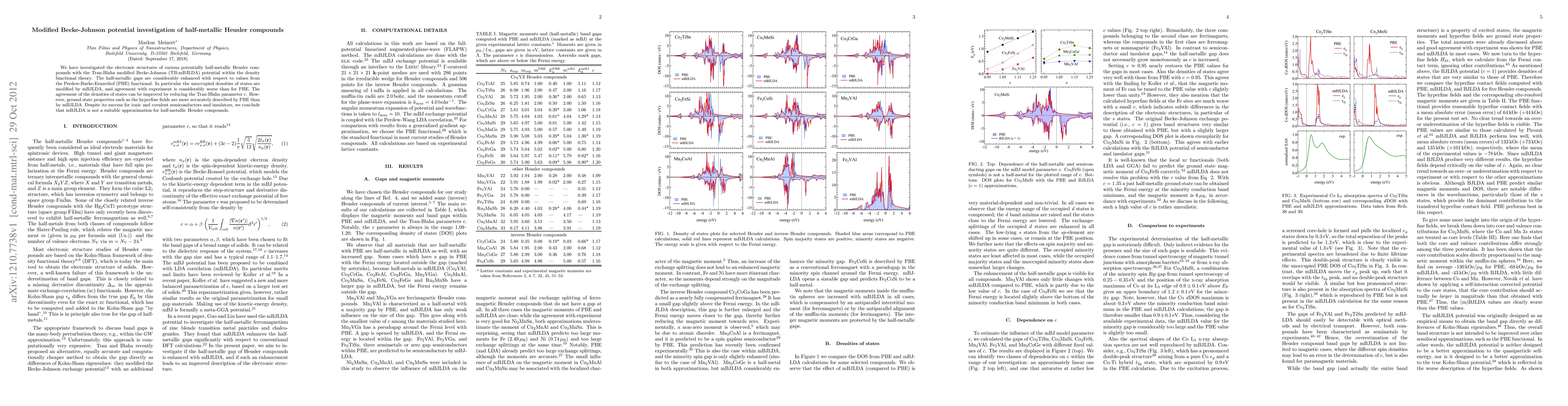 This study investigates the electronic structures of half-metallic Heusler compounds using the Tran-Blaha modified Becke-Johnson potential, finding enhanced half-metallic gaps but poorer experimental agreement compared to PBE. Despite its general success, mBJLDA is deemed unsuitable for these compounds.