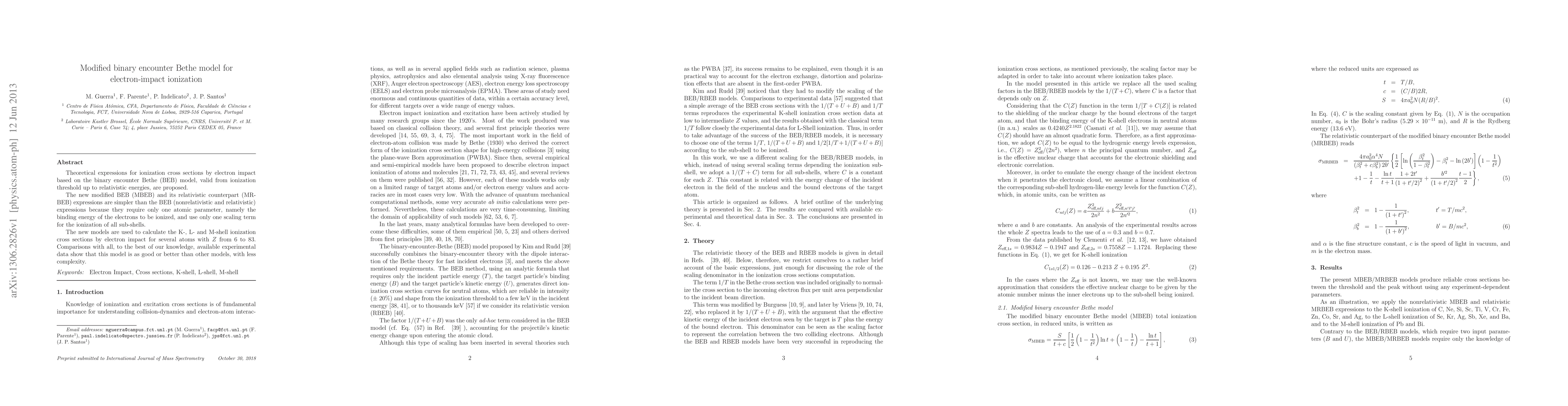 This paper proposes modified binary encounter Bethe (MBEB) models for electron-impact ionization, simplifying the traditional Bethe model by requiring only one atomic parameter. The new model, along with its relativistic version (MRBEB), calculates ionization cross sections for K-, L-, and M-shells, showing comparable or superior accuracy to existing models with less complexity.