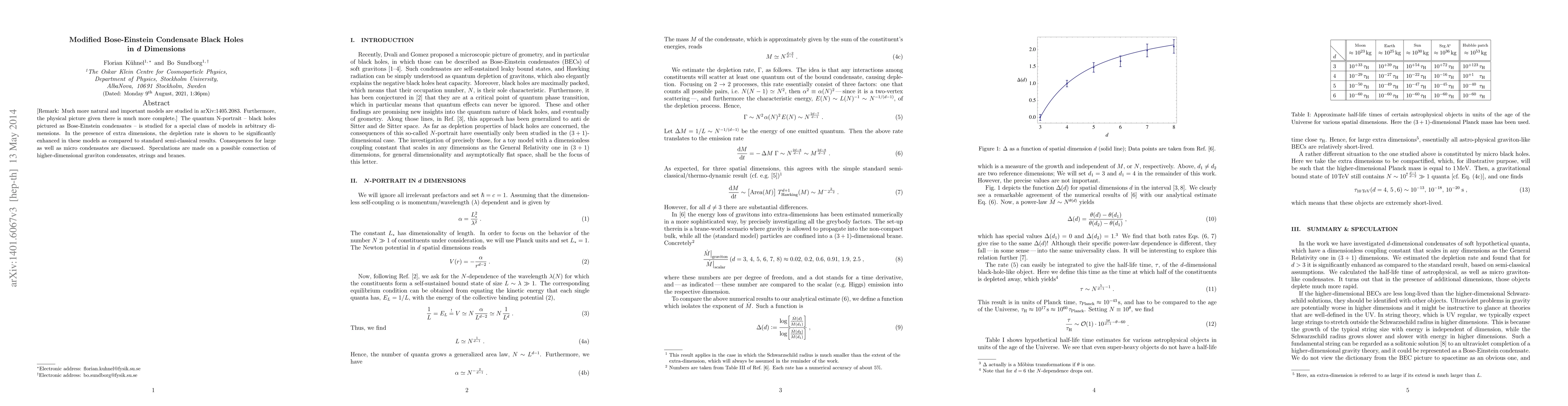 [Remark: Much more natural and important models are studied in arXiv:1405.2083. Furthermore, the physical picture given there is much more complete.] The quantum N-portrait -- black holes pictured as Bose-Einstein condensates -- is studied for a special class of models in arbitrary dimensions. In the presence of extra dimensions, the depletion rate is shown to be significantly enhanced in these models as compared to standard semi-classical results. Consequences for large as well as micro condensates are discussed. Speculations are made on a possible connection of higher-dimensional graviton condensates, strings and branes.