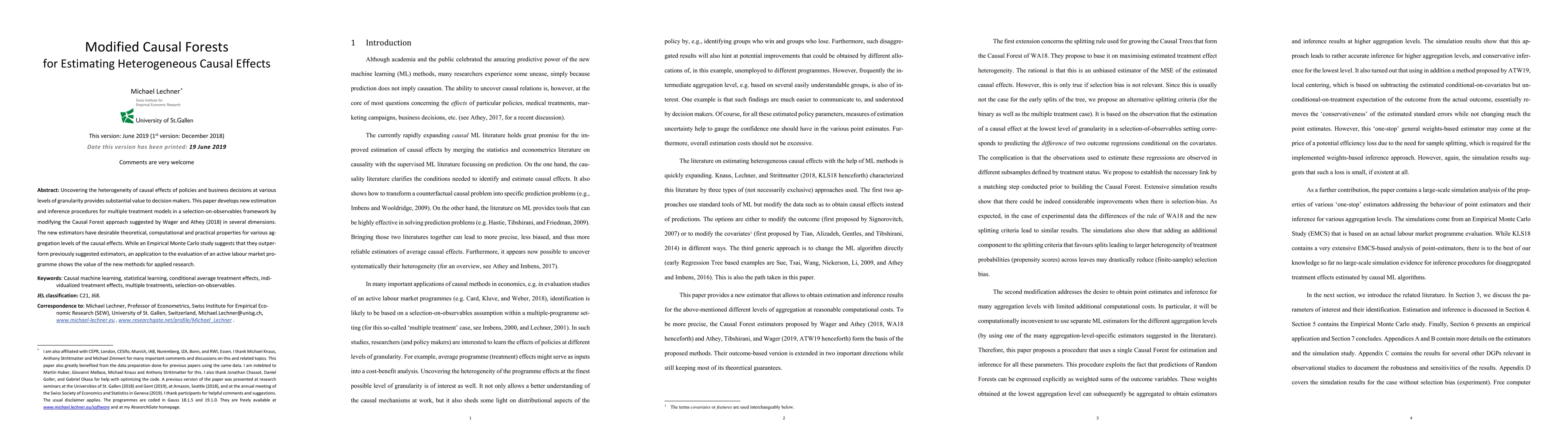 This paper introduces modified Causal Forest techniques to estimate heterogeneous causal effects across different levels of granularity, improving upon previous methods. The new estimators show superior performance in theoretical, computational, and practical aspects, as demonstrated by empirical studies and an application to labor market program evaluation.