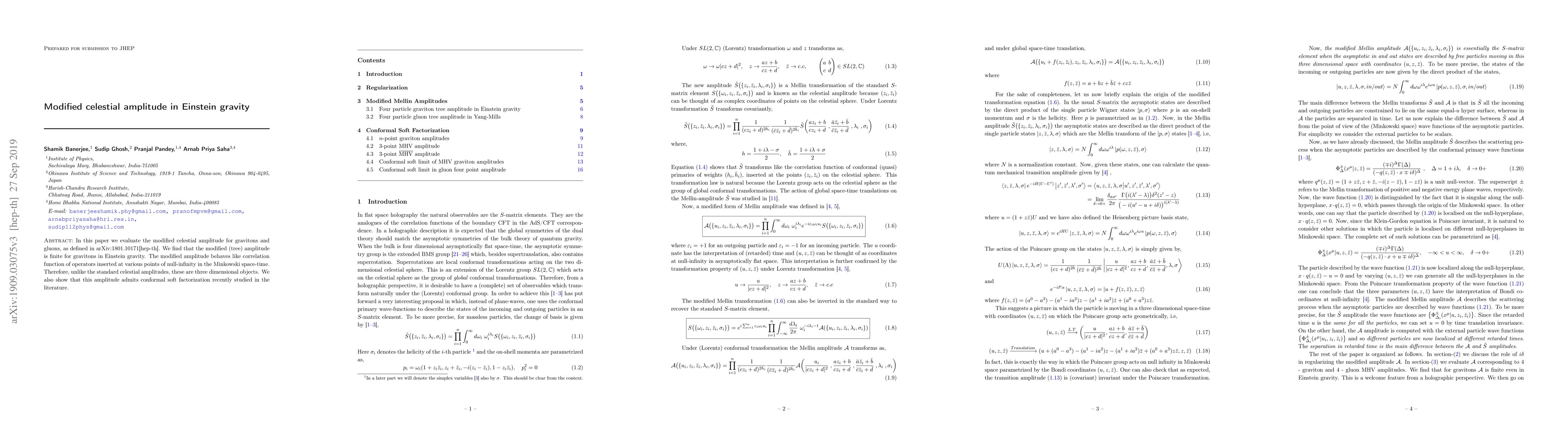 Researchers found that a modified celestial amplitude in Einstein gravity is finite for gravitons and behaves like a correlation function of operators, leading to new insights into the nature of gravitational interactions.