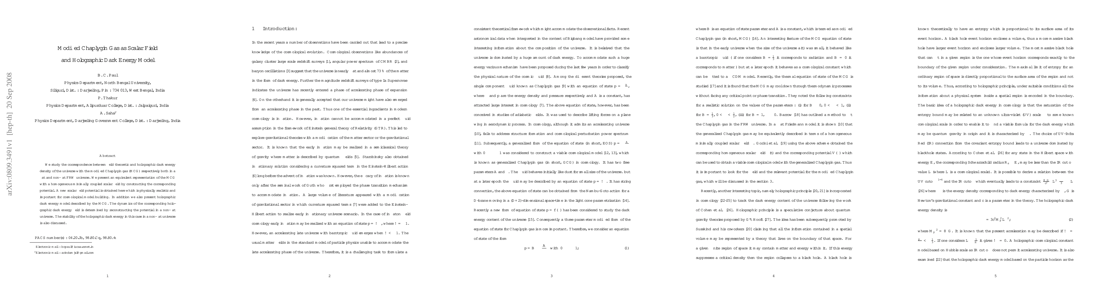 This paper explores the equivalence of modified Chaplygin gas (MCG) with a homogeneous scalar field and constructs a realistic potential for cosmological model building. It also develops a holographic dark energy model based on MCG, analyzing its dynamics and stability in a non-flat universe.