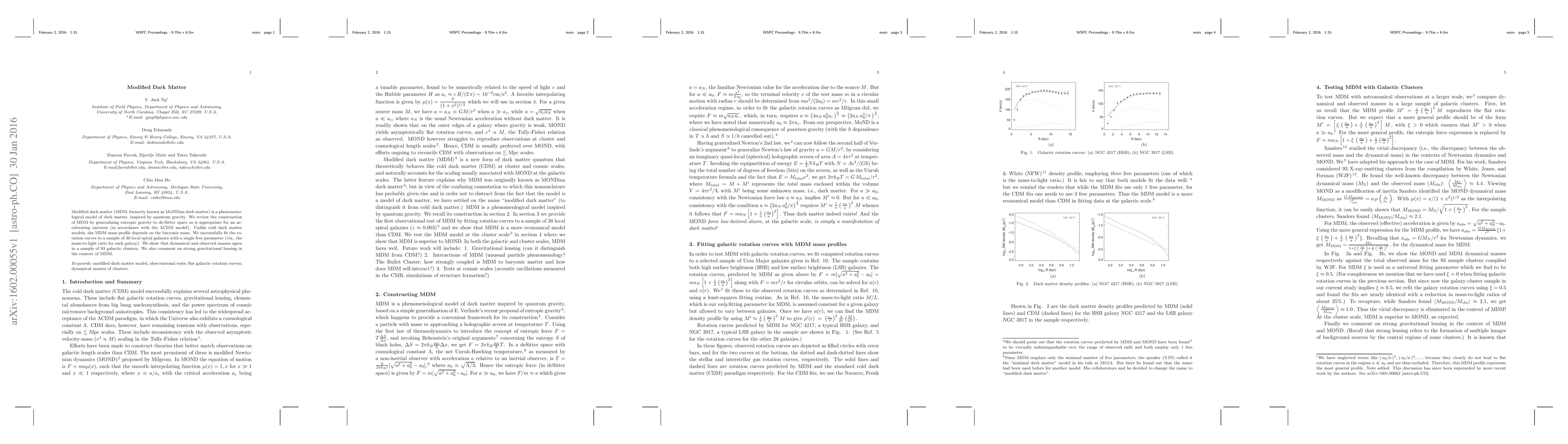 Modified Dark Matter (MDM) is a phenomenological model based on quantum gravity, which generalizes entropic gravity to de-Sitter space. Unlike cold dark matter, MDM's mass profile correlates with baryonic mass, fitting rotation curves of 30 local spiral galaxies and matching dynamical and observed masses in 93 galactic clusters.