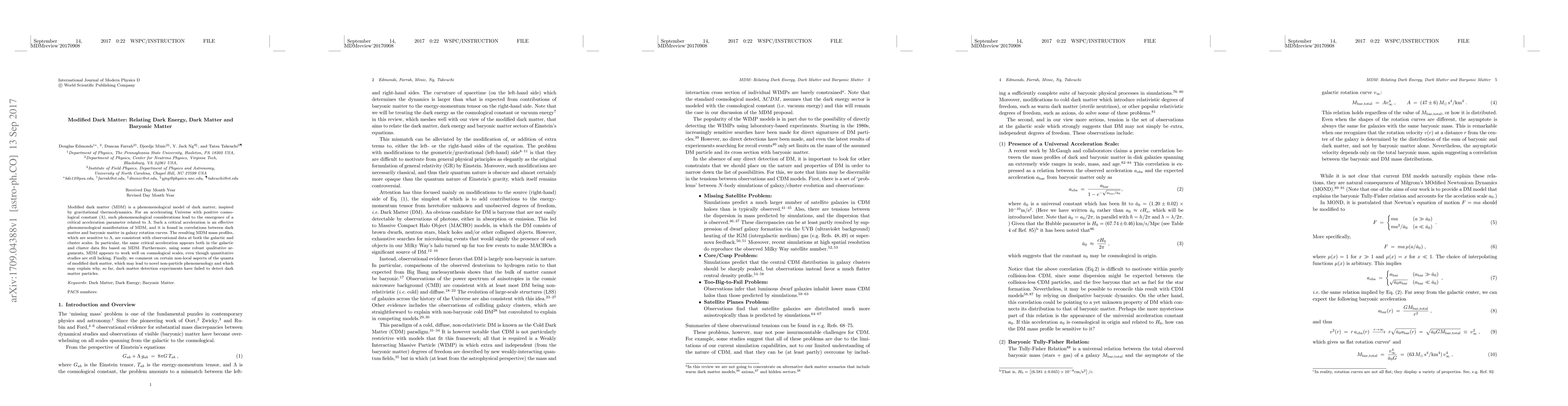 Modified dark matter (MDM) is a phenomenological model of dark matter, inspired by gravitational thermodynamics. For an accelerating Universe with positive cosmological constant ($\Lambda$), such phenomenological considerations lead to the emergence of a critical acceleration parameter related to $\Lambda$. Such a critical acceleration is an effective phenomenological manifestation of MDM, and it is found in correlations between dark matter and baryonic matter in galaxy rotation curves. The resulting MDM mass profiles, which are sensitive to $\Lambda$, are consistent with observational data at both the galactic and cluster scales. In particular, the same critical acceleration appears both in the galactic and cluster data fits based on MDM. Furthermore, using some robust qualitative arguments, MDM appears to work well on cosmological scales, even though quantitative studies are still lacking. Finally, we comment on certain non-local aspects of the quanta of modified dark matter, which may lead to novel non-particle phenomenology and which may explain why, so far, dark matter detection experiments have failed to detect dark matter particles.