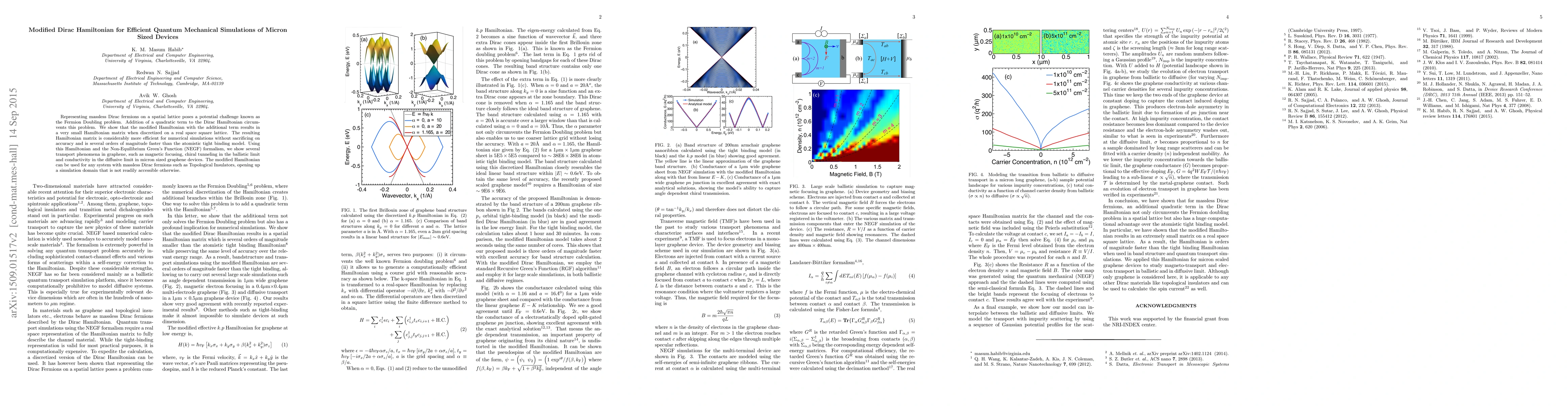 Representing massless Dirac fermions on a spatial lattice poses a potential challenge known as the Fermion Doubling problem. Addition of a quadratic term to the Dirac Hamiltonian circumvents this problem. We show that the modified Hamiltonian with the additional term results in a very small Hamiltonian matrix when discretized on a real space square lattice. The resulting Hamiltonian matrix is considerably more efficient for numerical simulations without sacrificing on accuracy and is several orders of magnitude faster than the atomistic tight binding model. Using this Hamiltonian and the Non-Equilibrium Green's Function (NEGF) formalism, we show several transport phenomena in graphene, such as magnetic focusing, chiral tunneling in the ballistic limit and conductivity in the diffusive limit in micron sized graphene devices. The modified Hamiltonian can be used for any system with massless Dirac fermions such as Topological Insulators, opening up a simulation domain that is not readily accessible otherwise.