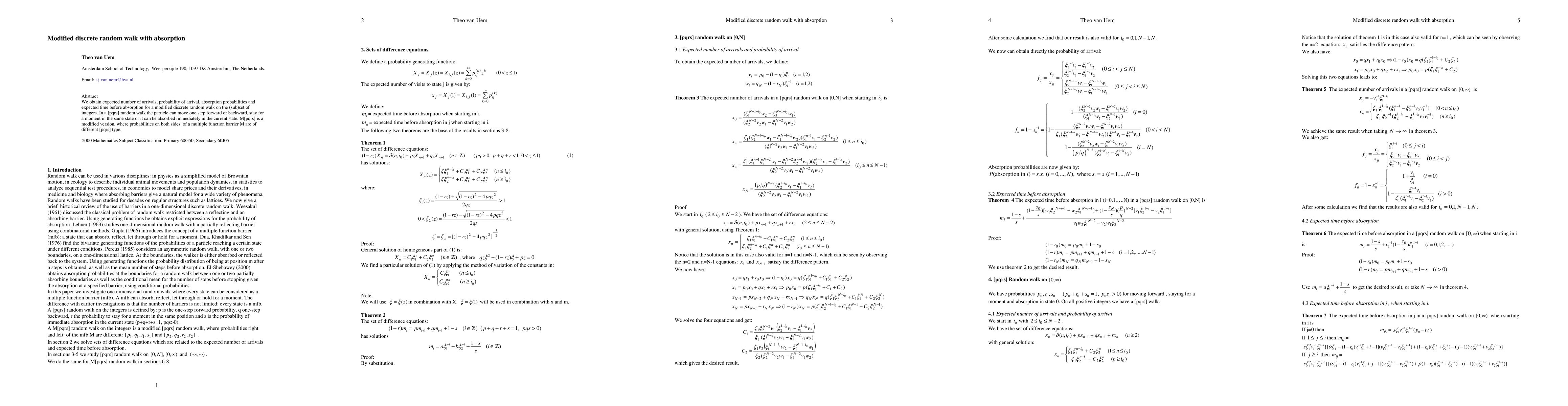 We obtain expected number of arrivals, probability of arrival, absorption probabilities and expected time before absorption for a modified discrete random walk on the (sub)set of integers. In a [pqrs] random walk the particle can move one step forward or backward, stay for a moment in the same state or it can be absorbed immediately in the current state. M[pqrs] is a modified version, where probabilities on both sides of a multiple function barrier M are of different [pqrs] type.