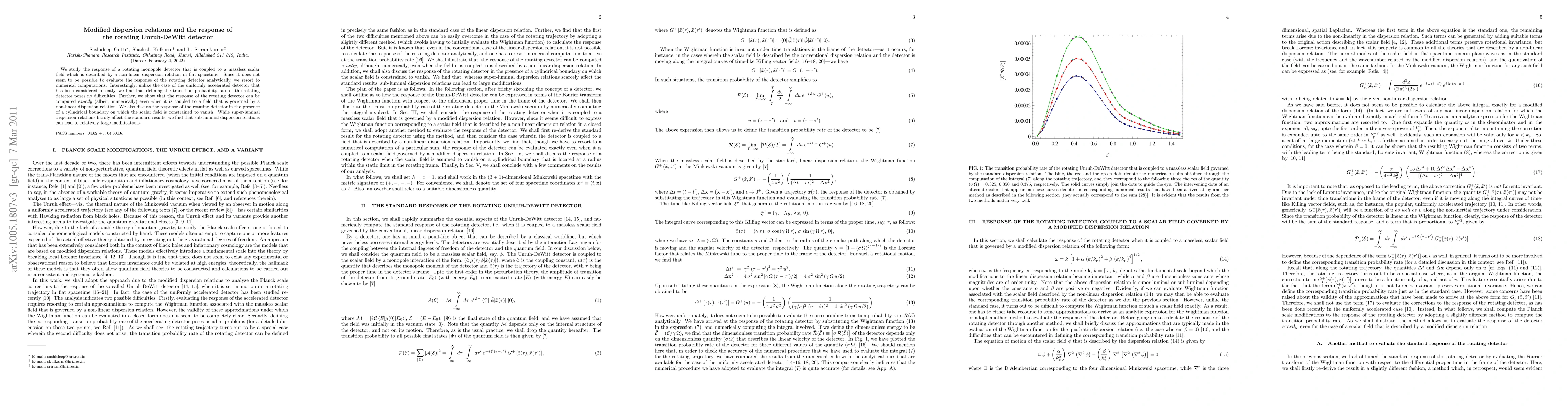 This paper investigates the response of a rotating Unruh-DeWitt detector coupled to a massless scalar field with a non-linear dispersion relation, employing numerical methods due to analytical intractability. It finds that defining the transition probability rate for the rotating detector is straightforward, unlike for uniformly accelerated detectors.