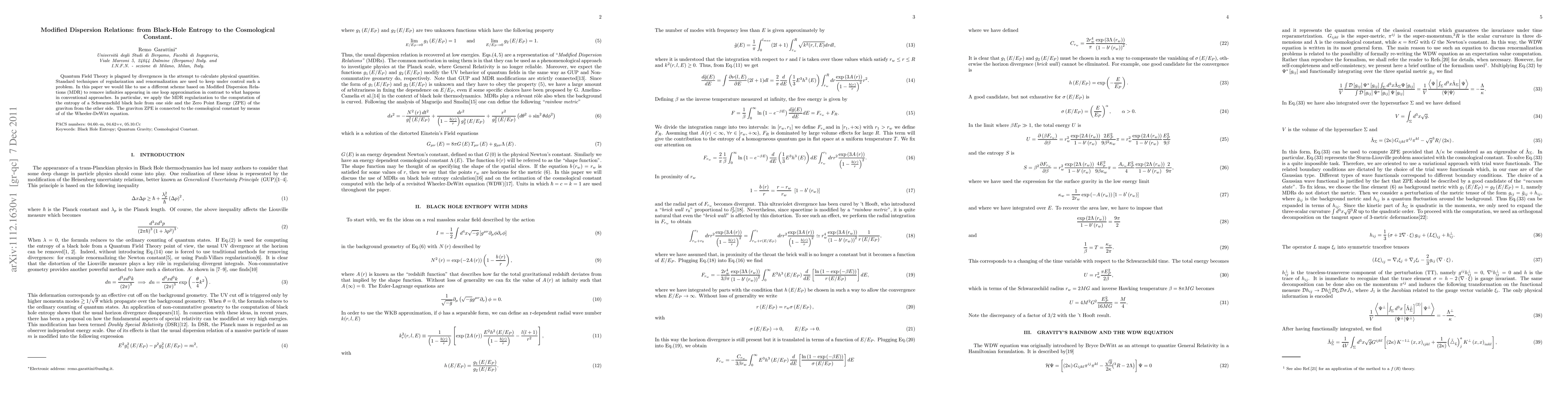 This paper explores Modified Dispersion Relations (MDR) to tackle divergences in Quantum Field Theory, applying this novel regularization scheme to compute the entropy of a Schwarzschild black hole and the Zero Point Energy (ZPE) of the graviton, linking the latter to the cosmological constant via the Wheeler-DeWitt equation.