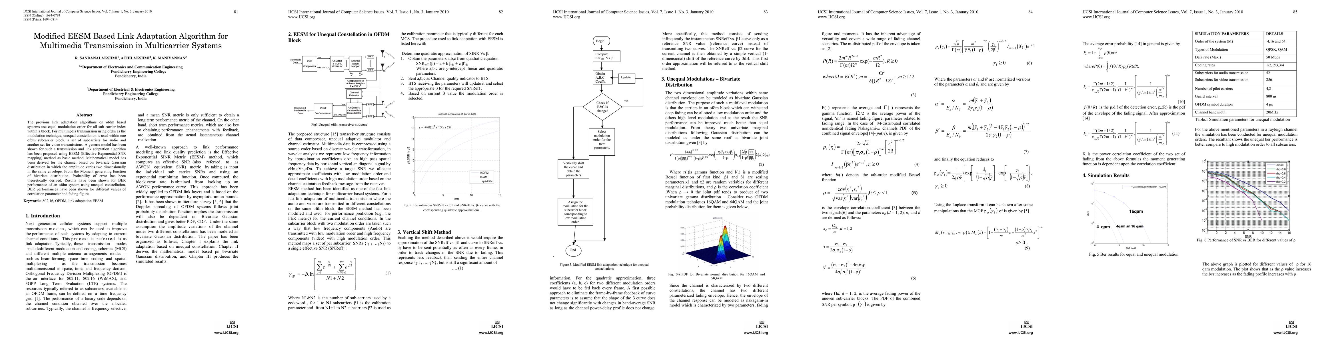 The previous link adaptation algorithms on ofdm based systems use equal modulation order for all sub carrier index within a block. For multimedia transmission using ofdm as the modulation technique, unequal constellation is used within one ofdm subcarrier block, a set of subcarriers for audio and another set for video transmissions. A generic model has been shown for such a transmission and link adaptation algorithm has been proposed using EESM (Effective Exponential SNR mapping) method as basic method. Mathematical model has been derived for the channel based on bivariate Gaussian distribution in which the amplitude varies two dimensionally in the same envelope. From the Moment generating function of bivariate distribution, Probability of error has been theoretically derived. Results have been shown for BER performance of an ofdm system using unequal constellation. BER performances have been shown for different values of correlation parameter and fading figure.