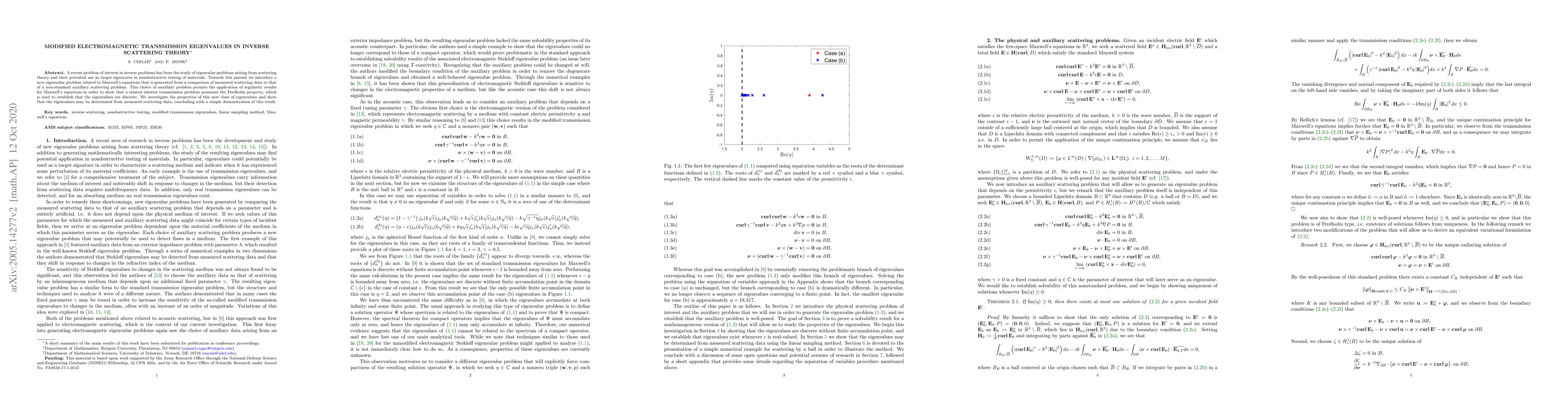 This paper introduces a novel eigenvalue problem derived from Maxwell's equations for inverse scattering theory, demonstrating that these eigenvalues are discrete and can be determined from measured scattering data, thus serving as potential signatures in nondestructive testing. The study leverages an auxiliary scattering problem to apply regularity results and establish the Fredholm property of the interior transmission problem.