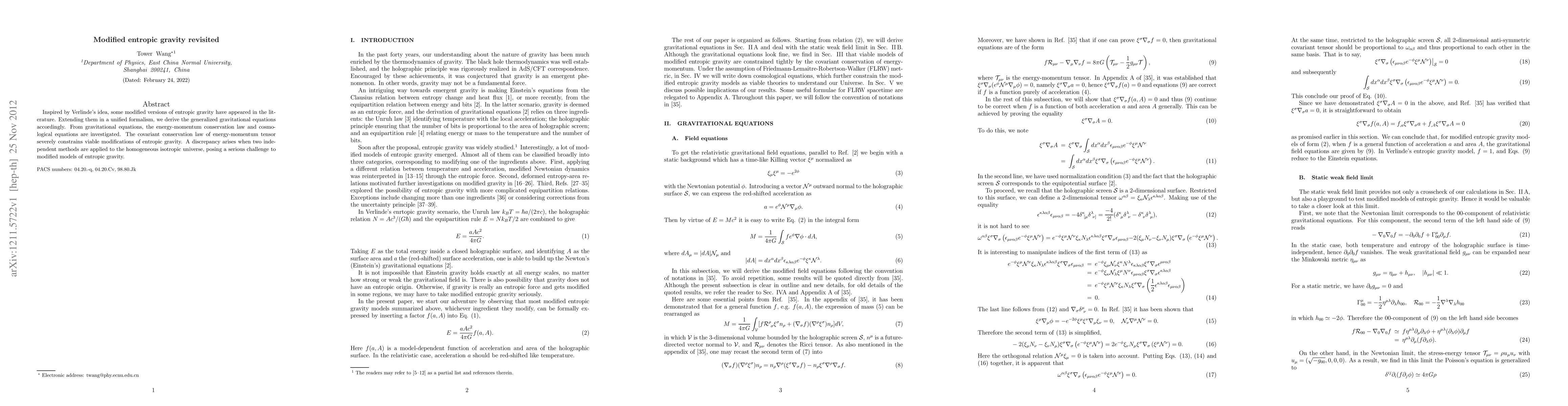 This paper extends modified versions of entropic gravity into a unified formalism, deriving generalized gravitational equations and investigating their implications on energy-momentum conservation and cosmological models. However, discrepancies between two methods applied to a homogeneous isotropic universe challenge the viability of these modified entropic gravity models.