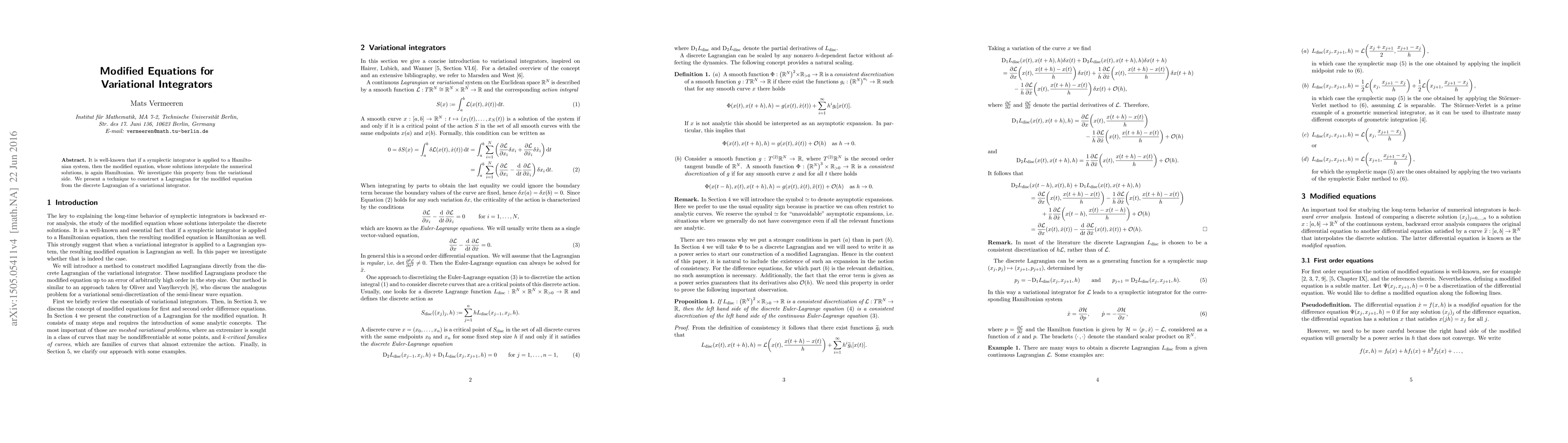 Researchers developed a method to create a Lagrangian for modified equations from variational integrators, ensuring these equations remain Hamiltonian. This technique has implications for improving the accuracy of numerical simulations in physics.