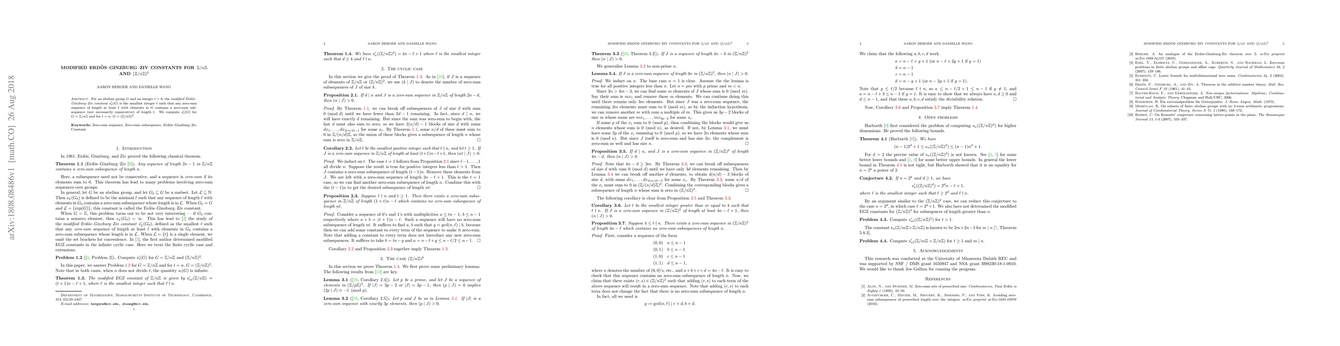 This paper calculates the modified Erdős-Ginzburg-Ziv constants $s_t'(G)$ for the group $G = \mathbb Z/n\mathbb Z$ and $G = (\mathbb Z/n\mathbb Z)^2$ when $t = n$. It determines the smallest sequence length $\ell$ ensuring any sequence of that length has a zero-sum subsequence of length $t$.