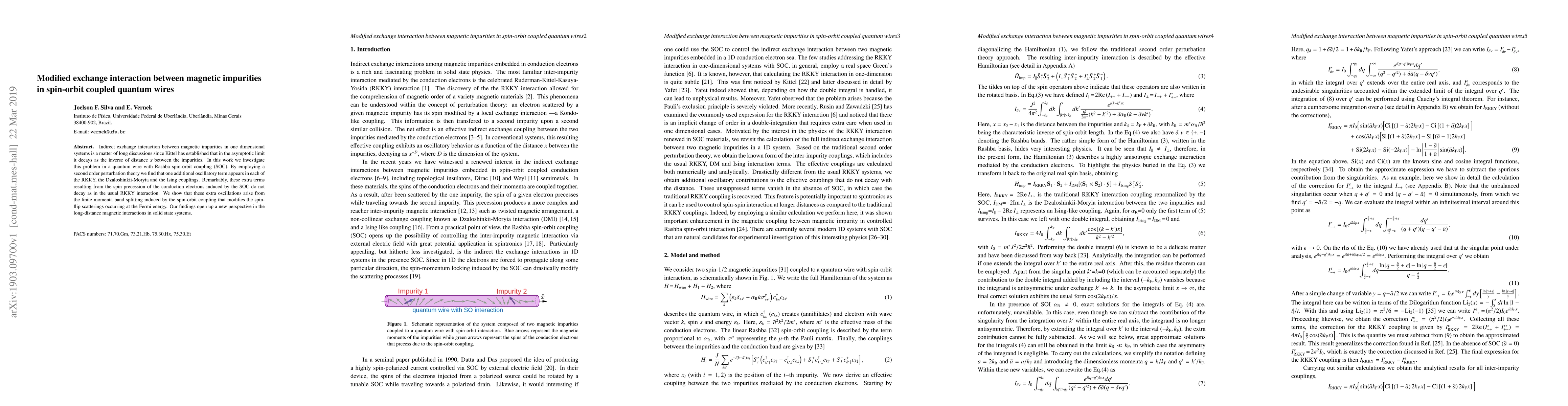 This paper investigates the modified exchange interaction between magnetic impurities in quantum wires with Rashba spin-orbit coupling, revealing that additional oscillatory terms arise due to spin precession effects, which do not decay as the usual RKKY interaction. These findings suggest a new perspective on long-distance magnetic interactions in solid-state systems.