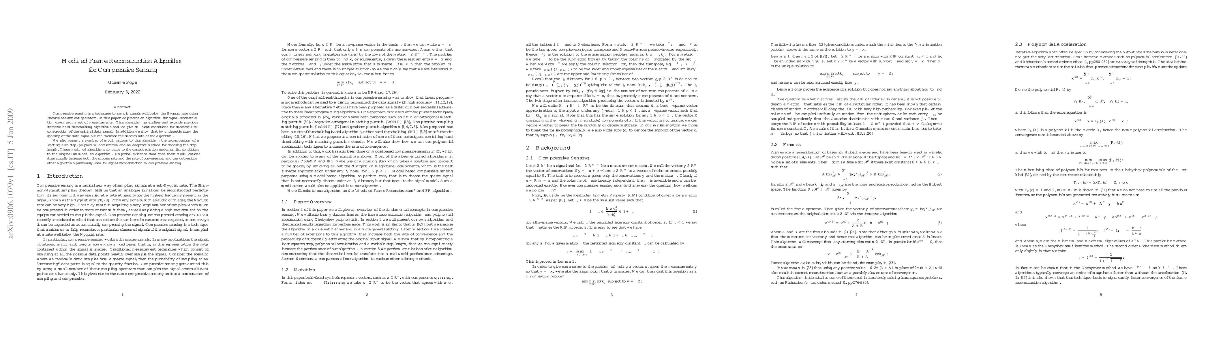 This paper introduces a modified frame reconstruction algorithm for compressive sensing, generalizing previous iterative hard thresholding methods. The proposed algorithm incorporates least squares, polynomial acceleration, and adaptive step-length selection, significantly improving success rate and convergence speed compared to other methods.