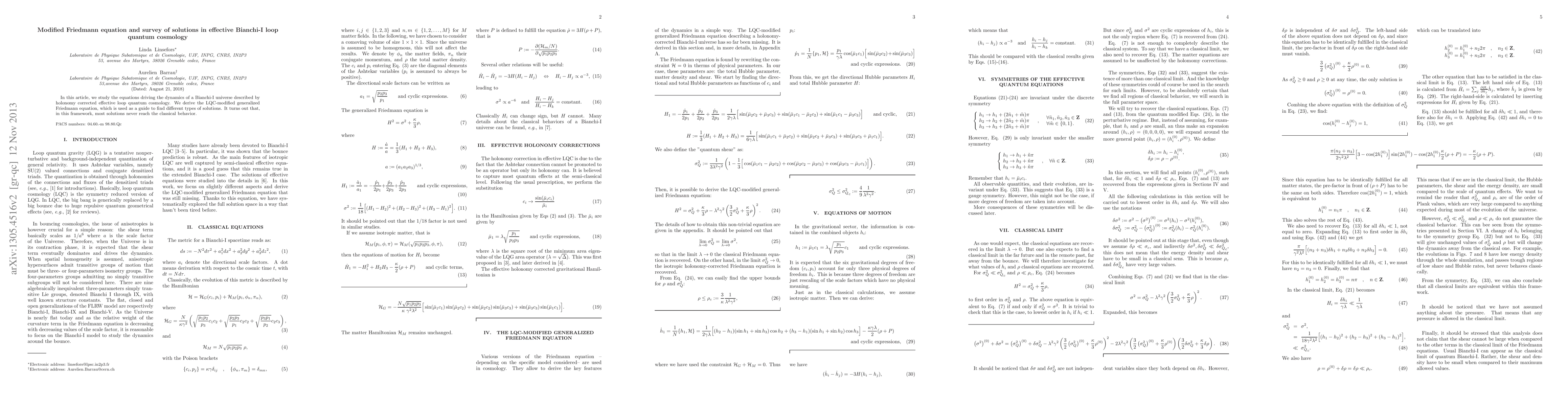 This paper derives the modified Friedmann equation in holonomy corrected effective loop quantum cosmology for a Bianchi-I universe and explores various solutions, finding that most do not transition to classical behavior.